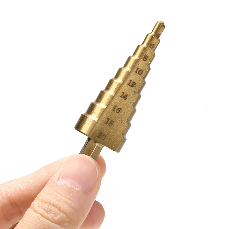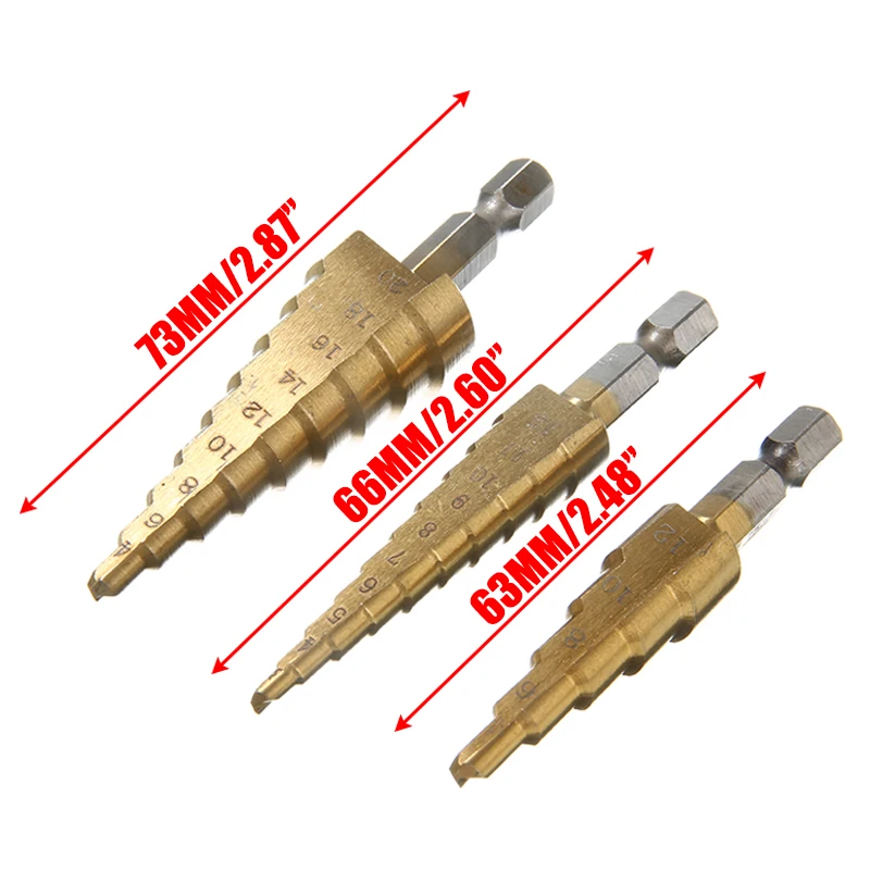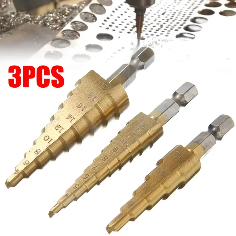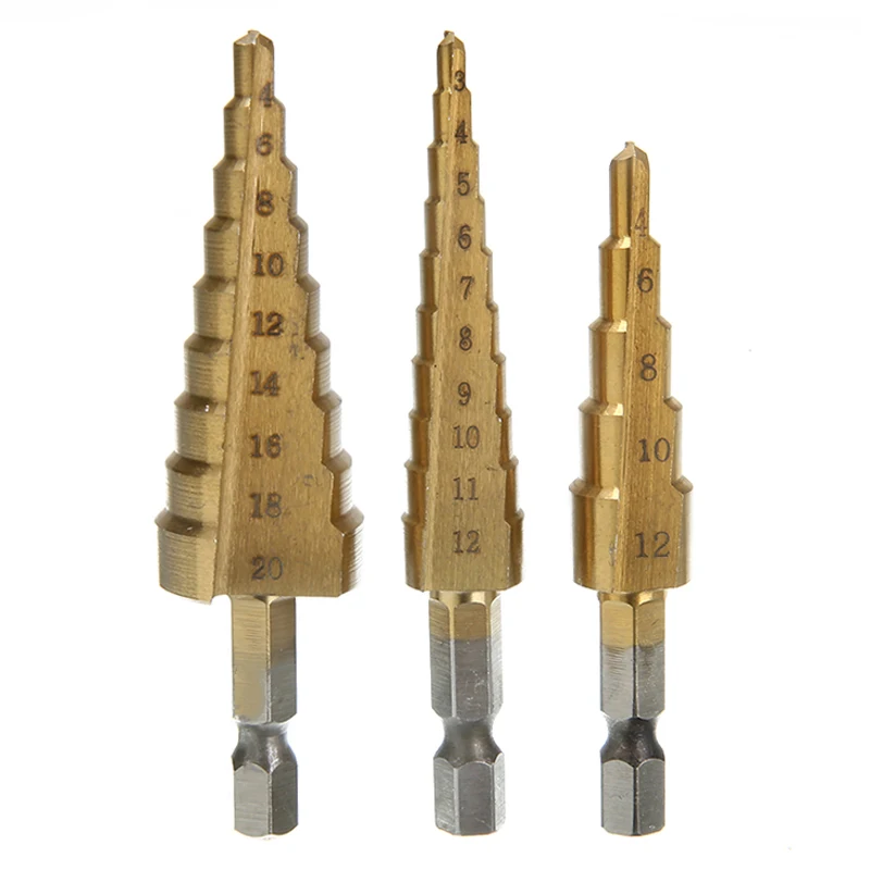 3 шт.компл. ступенчатые конические сверла из быстрорежущей стали с титановым покрытием для сверления листового металла, латуни, дерева 3-124-124-20 мм