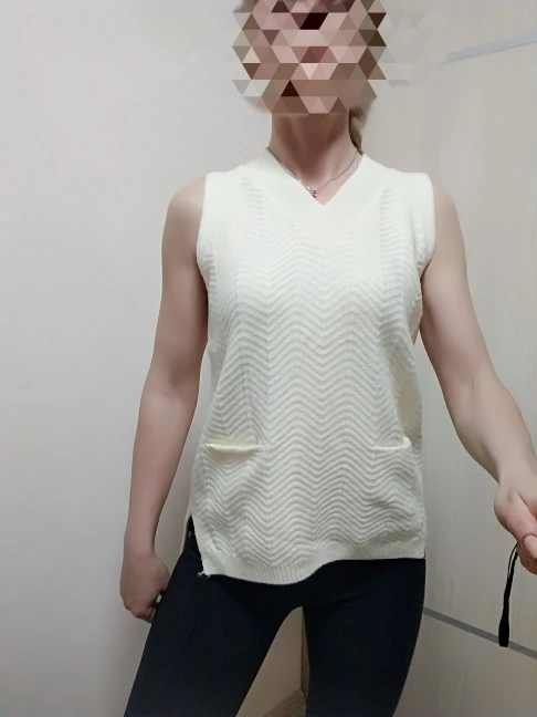 Безрукавка очень классная, качественная, очень мягкая, красивый цвет, до 48 размера максимум, мой рост 175 см прикрывает попу, так что высокие девушки смело берите. Параметры: обхват груди 92 см, обхват талии 80 см, обхват бёдер 100см. Я очень довольна и рекомендую всем данный товар. Фото позже.