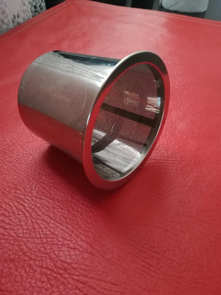 Качество колхозное. Дно пошло волнами в 2 местах по шву со стенками. там будет всегда оставаться вода и рано или поздно пойдет ржавчина. В описании товара не хватает данных, хуже только когда предлагают подбирать крышку чайника, опираясь на его объем :-) На вопрос, имеет ли фильтр конусообразную форму, продавец выпал в осадок. На самом деле - форма усечённого конуса. в общем, не стоит своих денег. Цена сему - 50 руб. в базарный день :-) приспособлю для непищевых целей