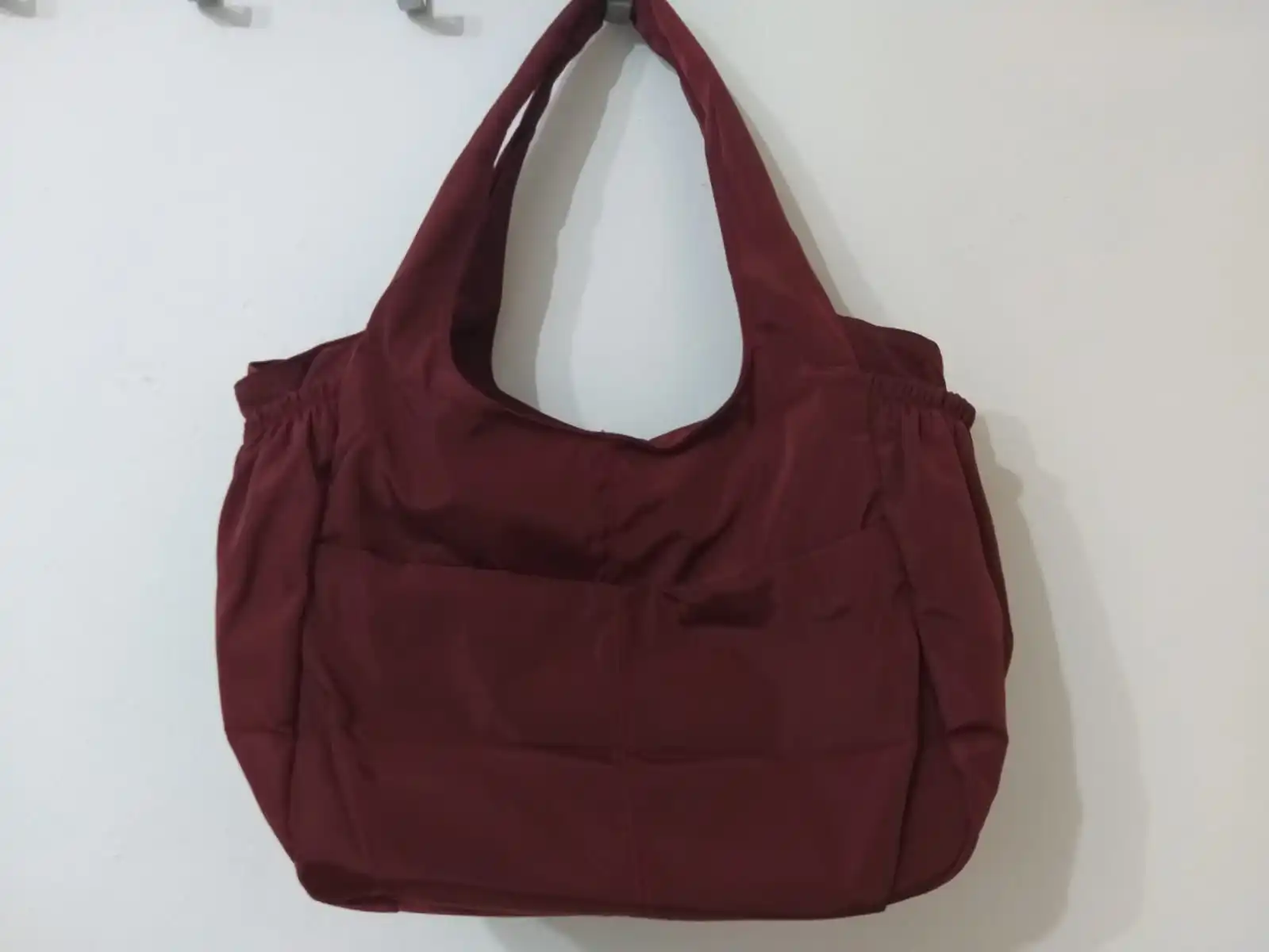 купила за 1052р. Ткань плащевая, непромокаемая, лёгкая, качество суперское! цвет не такой красный как на картинке, а ближе к темно красному. мне очень понравилась сумка. специально брала из-за больш количества карманов. застёжка и фурнитура на высоте. берите! рекомендую!