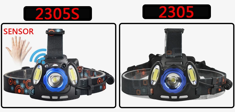 2 модели налобный фонарь "2305S функция датчика ведьмы" "2305 без сенсорной функции" 2 цвета тела на выбор.