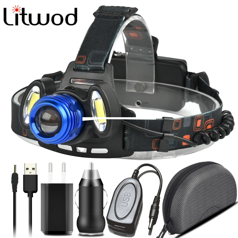 Светодиодный налобный фонарь Головной фонарь XM-L T6 2 * Cob наружный для кемпинга Zoom водонепроницаемый Usb Перезаряжаемый Аккумулятор 2x18650