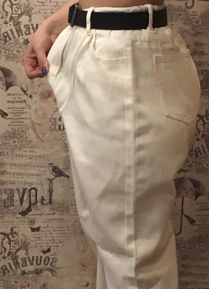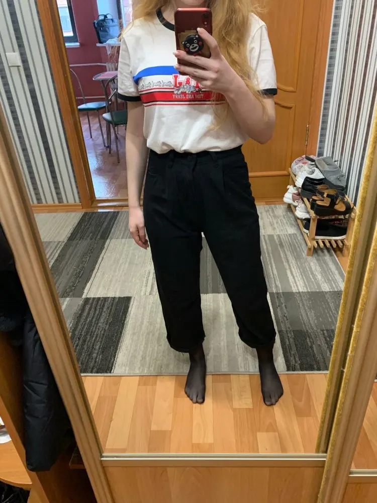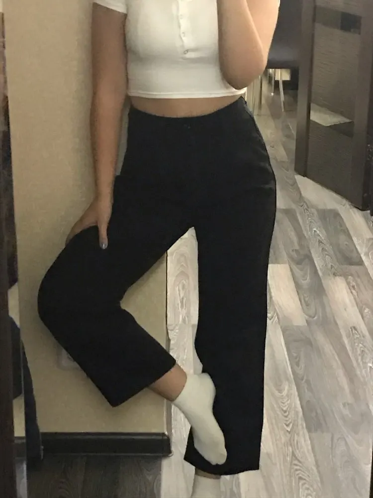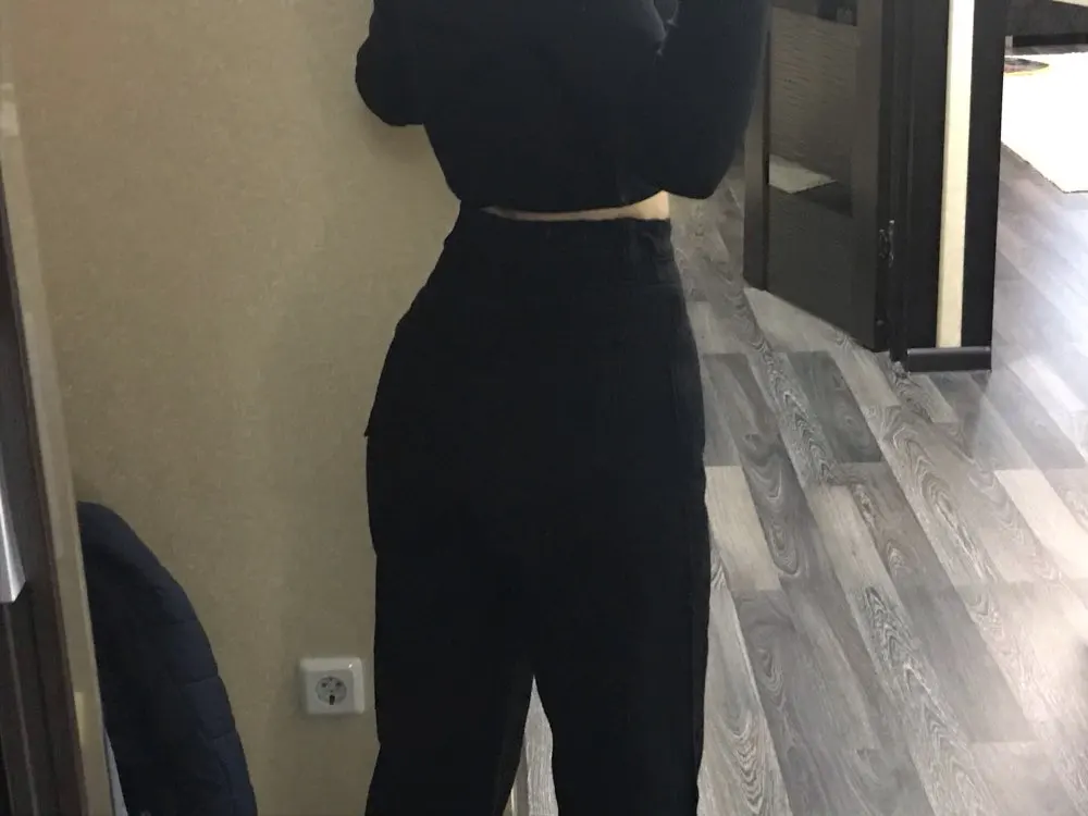 это уже вторые мои штаны из этого магазина. первые были белыми. на этот раз взяла на размер меньше (S), соответственно, они получились короче предыдущих. все нравится. очень плотные. большие карманы, вы можете спрятать туда труп математички. в школе получила по шее два раза за такие штаны. ☠️☠️☠️ 10 смертей из 10