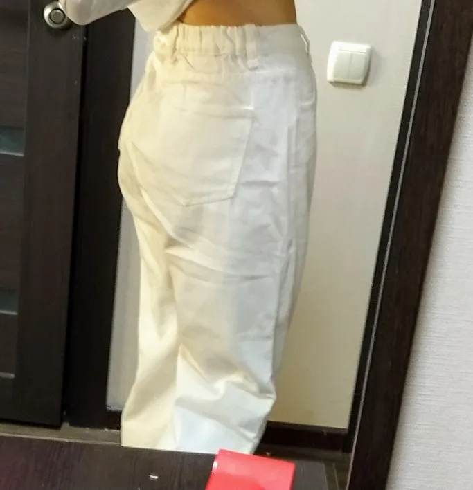 Штаны супер, но, к сожалению, у них не было пуговки, чтоб застегивать. Но не думаю, что это большая проблема, так что всем советую 10/10. Ткань есть что плотная, хорошая