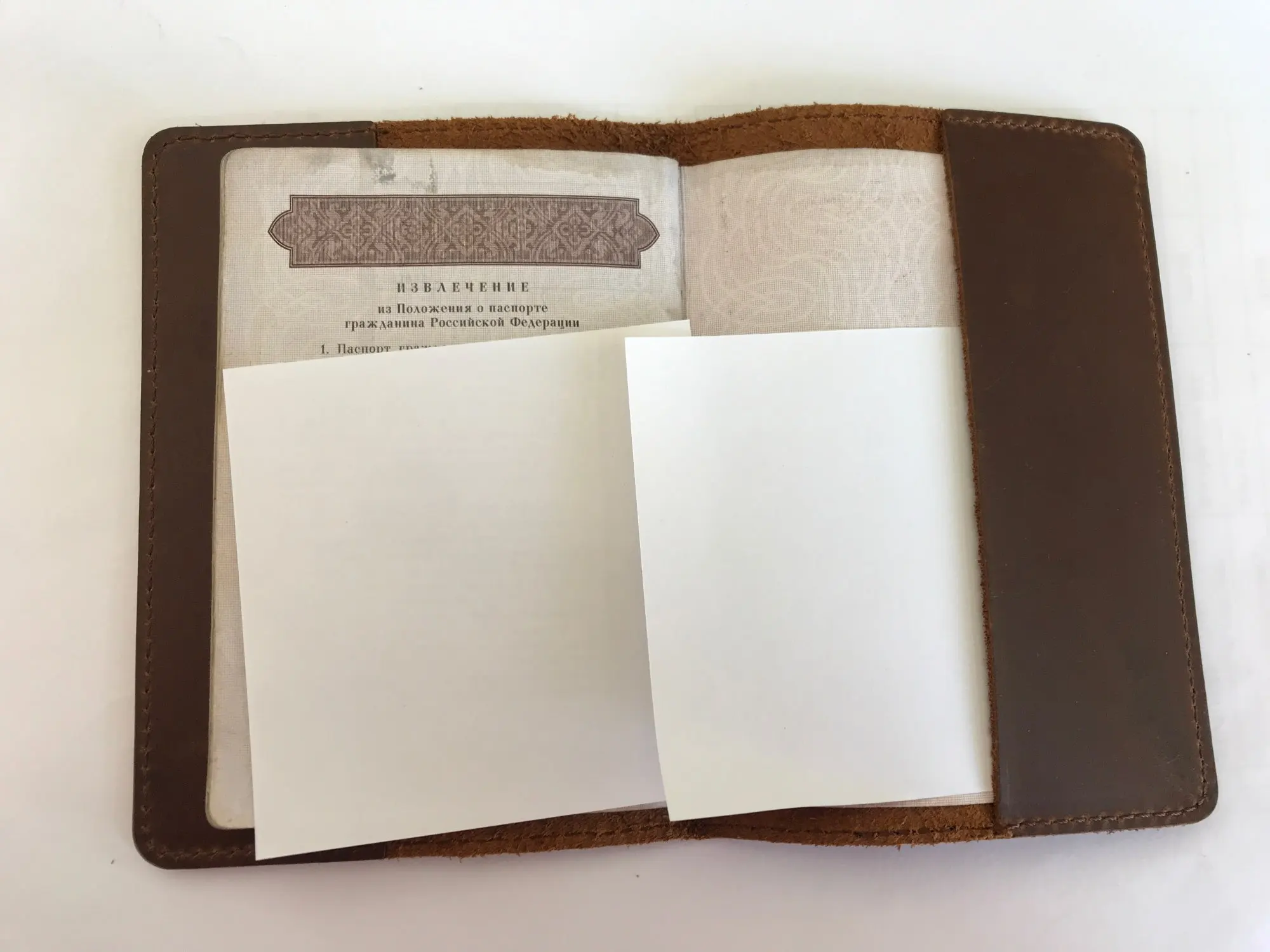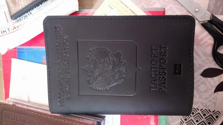 Отличный чехол, не пахнет, паспорт сел как влитой, немного запаса по 3мм со всех сторон.