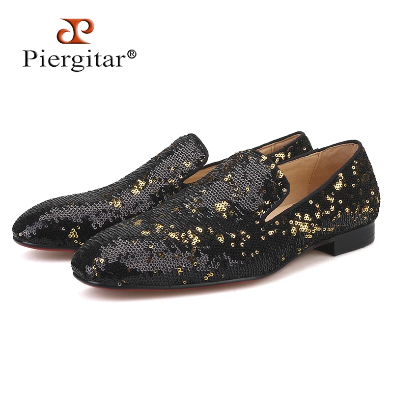 Туфли мужские PIERGITAR, черные, золотистые, с блестками, для свадьбы и выпускного вечера, повседневные, с красной подошвой, 2019