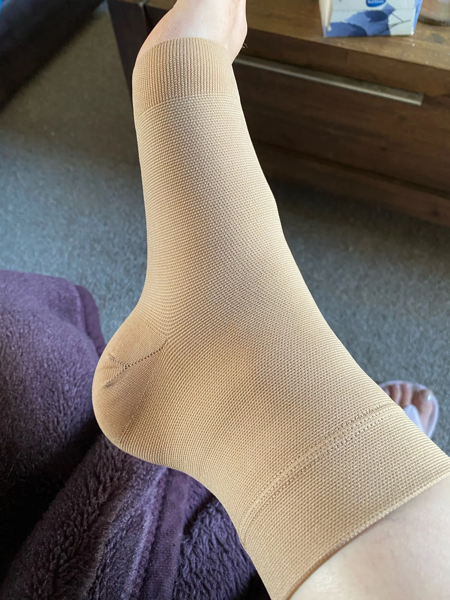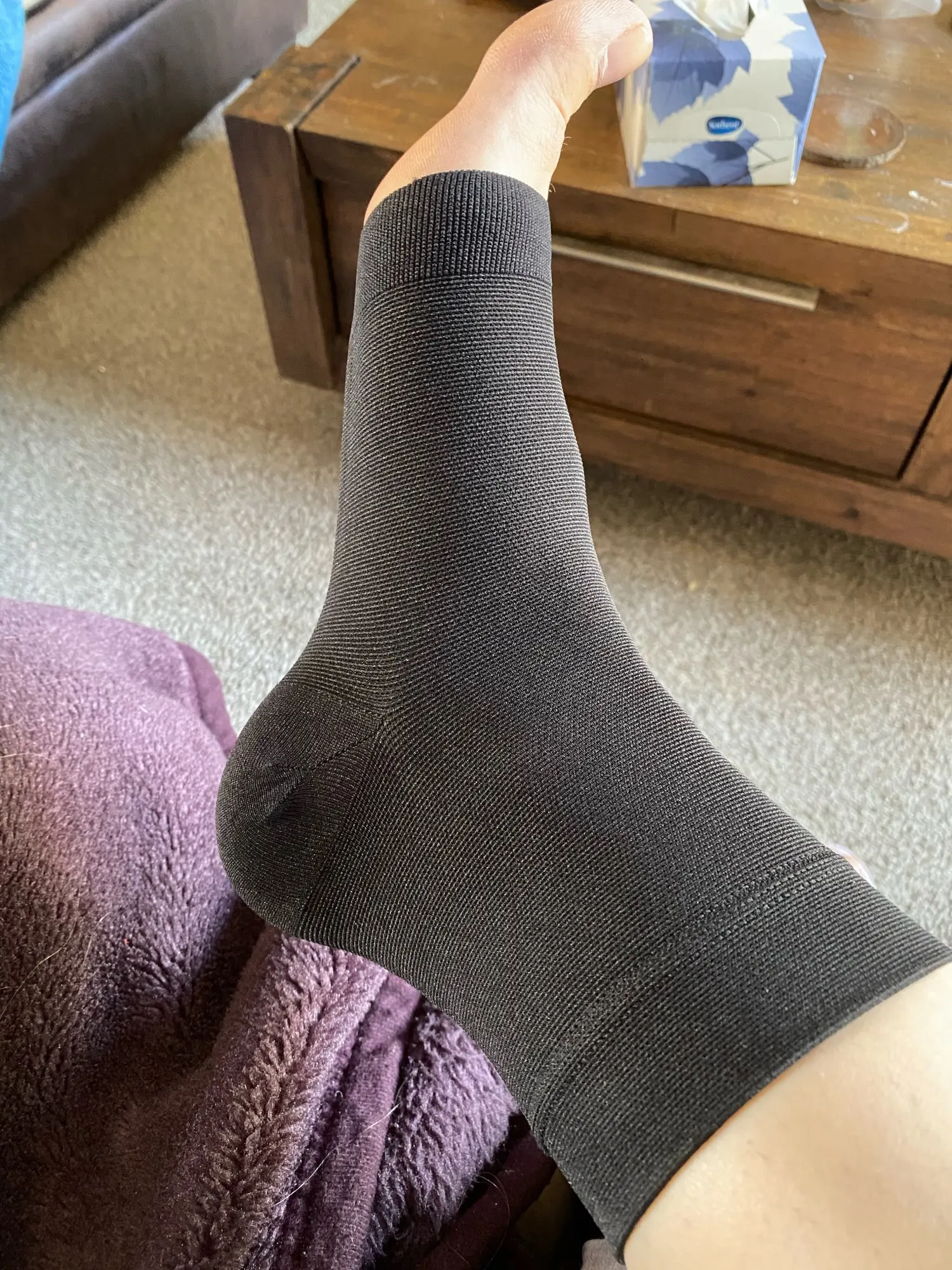 Хороший продукт, как и ожидалось. Носки обеспечивают некоторую поддержку. Я купил их для поддержки во время ношения на высоких каблуках, так как мне кажется, что я часто скручиваю лодыжки на каблуках. Описание размера соответствует. Мой обхват лодыжки 22,5 см. 57 дней в Новую Зеландию