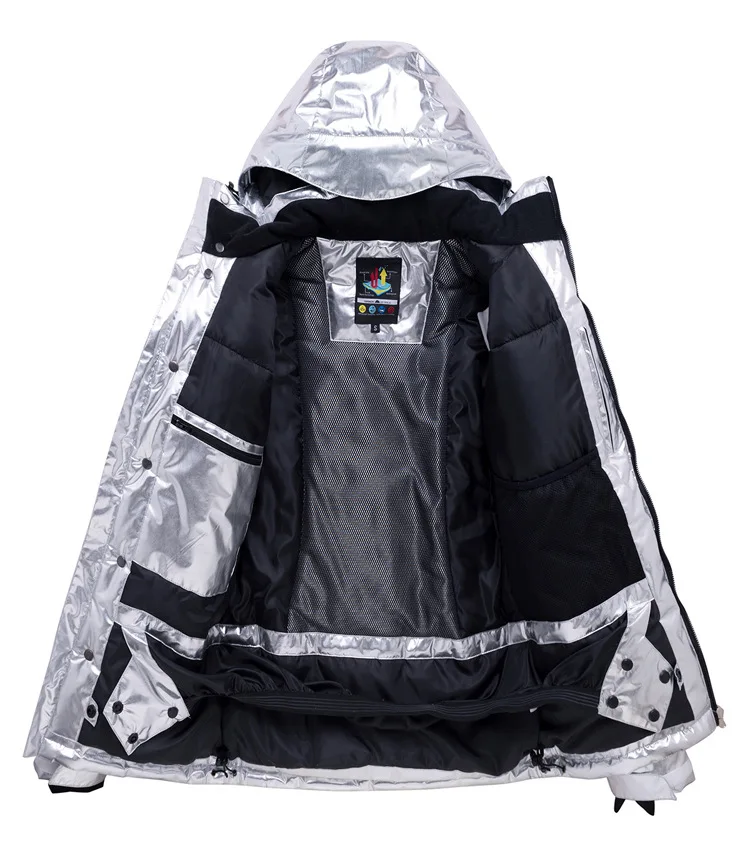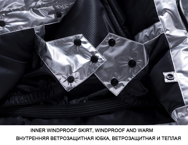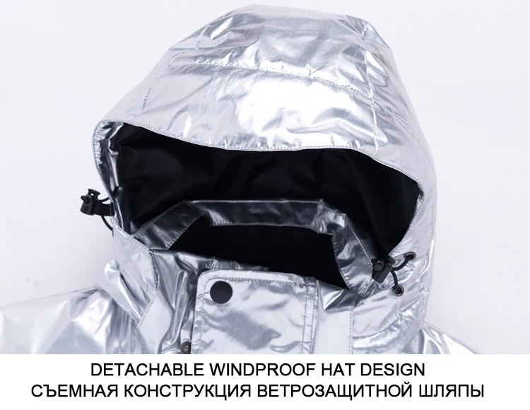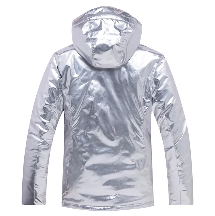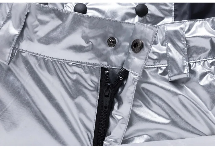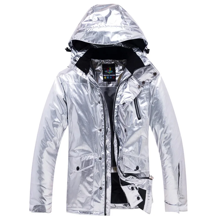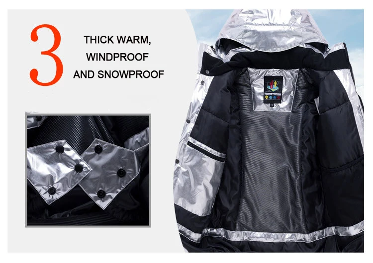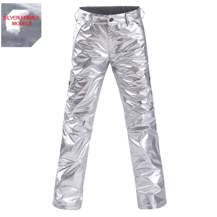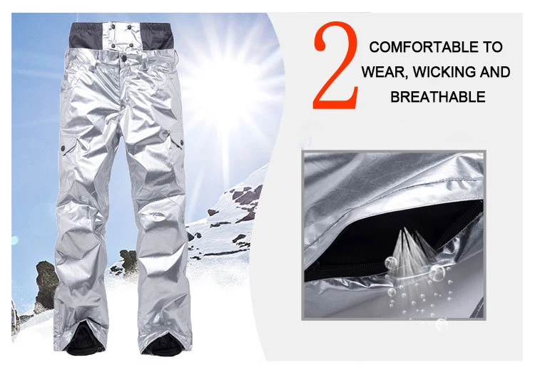 Блестящее серебро мужской женский лыжный костюм зимняя теплая водонепроницаемая ветрозащитная куртка для сноуборда брюки Лыжная одежда женские зимние костюмы