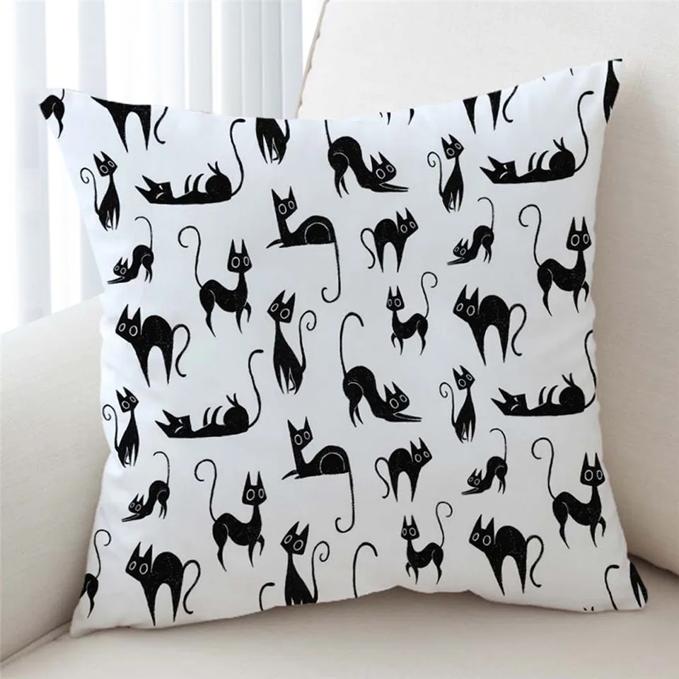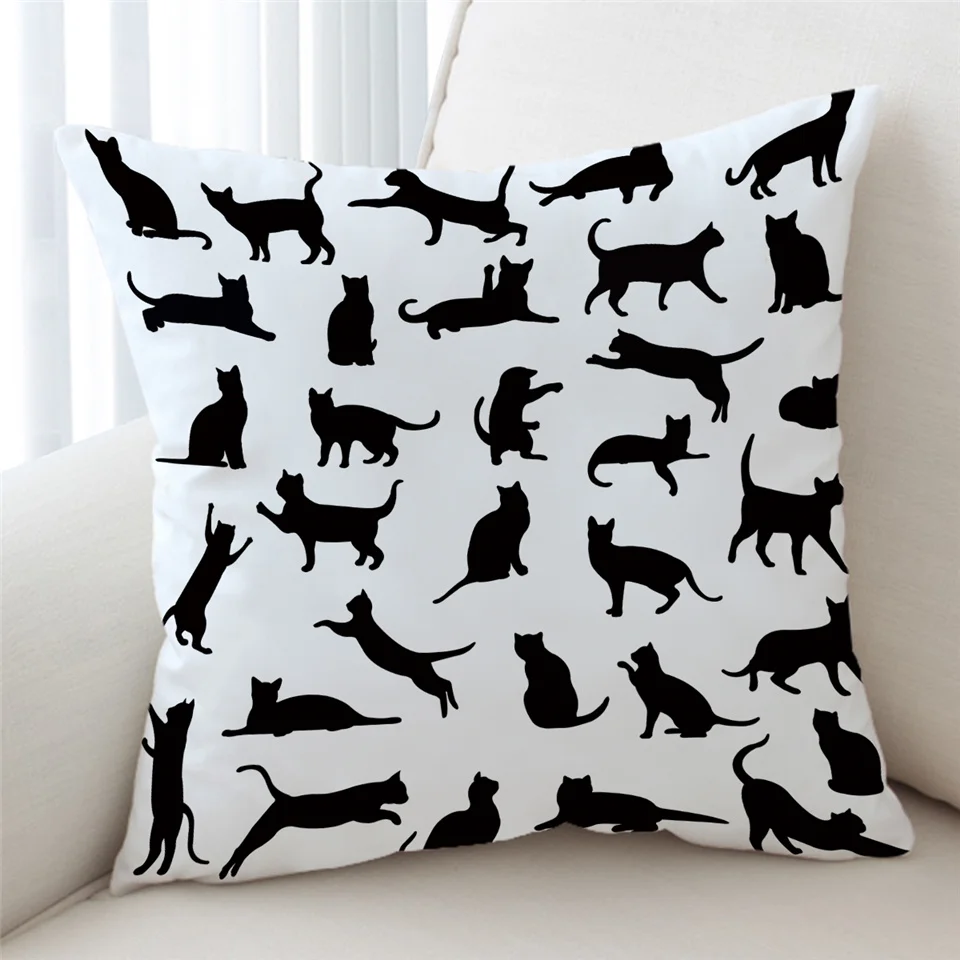 Наволочка для подушки BeddingOutlet, наволочка с животным, с рисунком кошек, черно-белая, декоративная наволочка