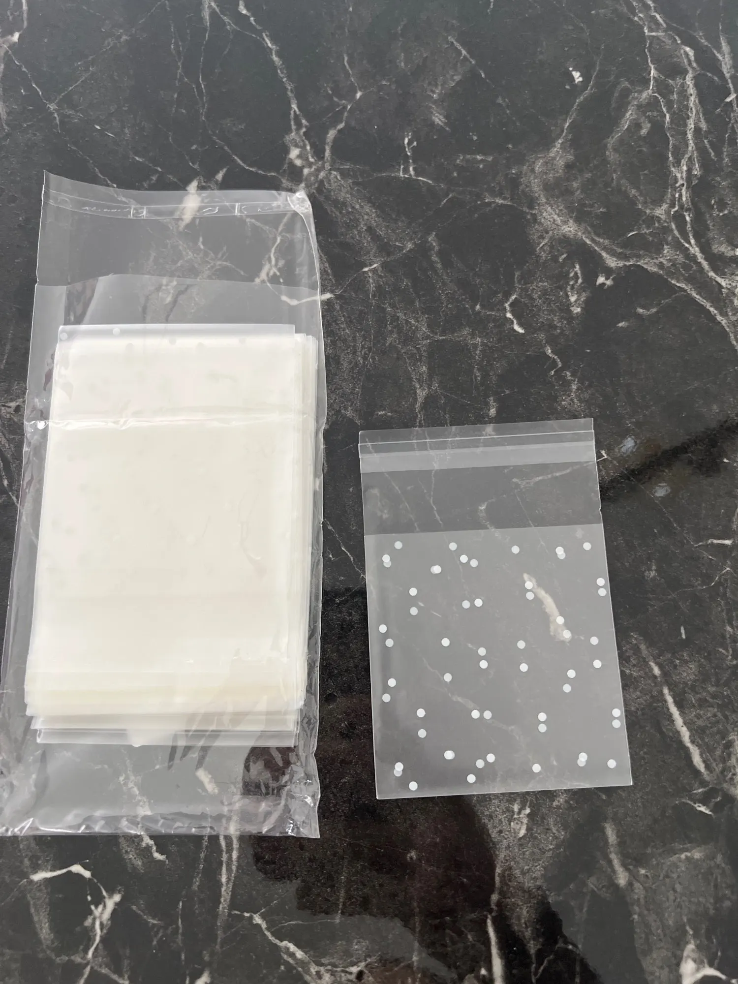 100 шт., прозрачные матовые пластиковые пакеты в белый горошек