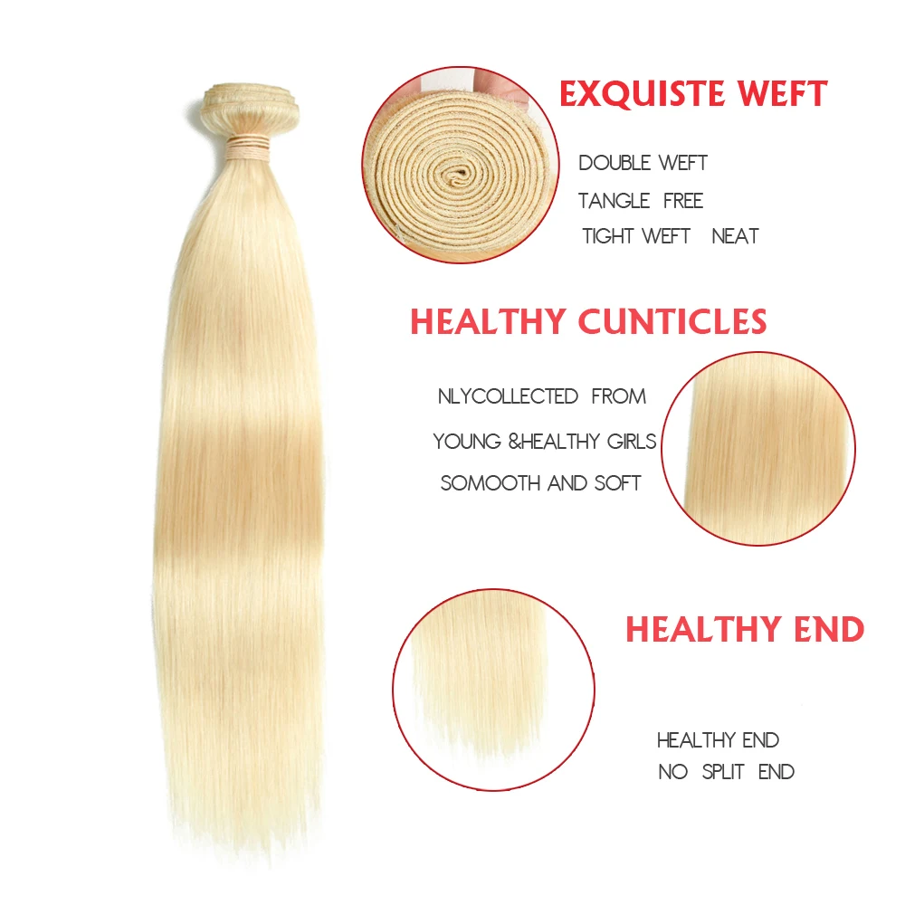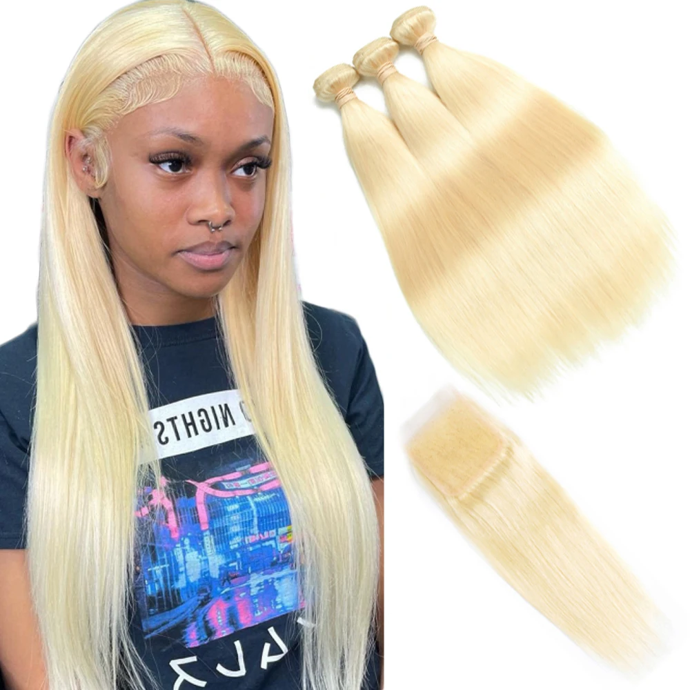 Hair MaterialBrazilian Straight Bundle With Closure blonde color