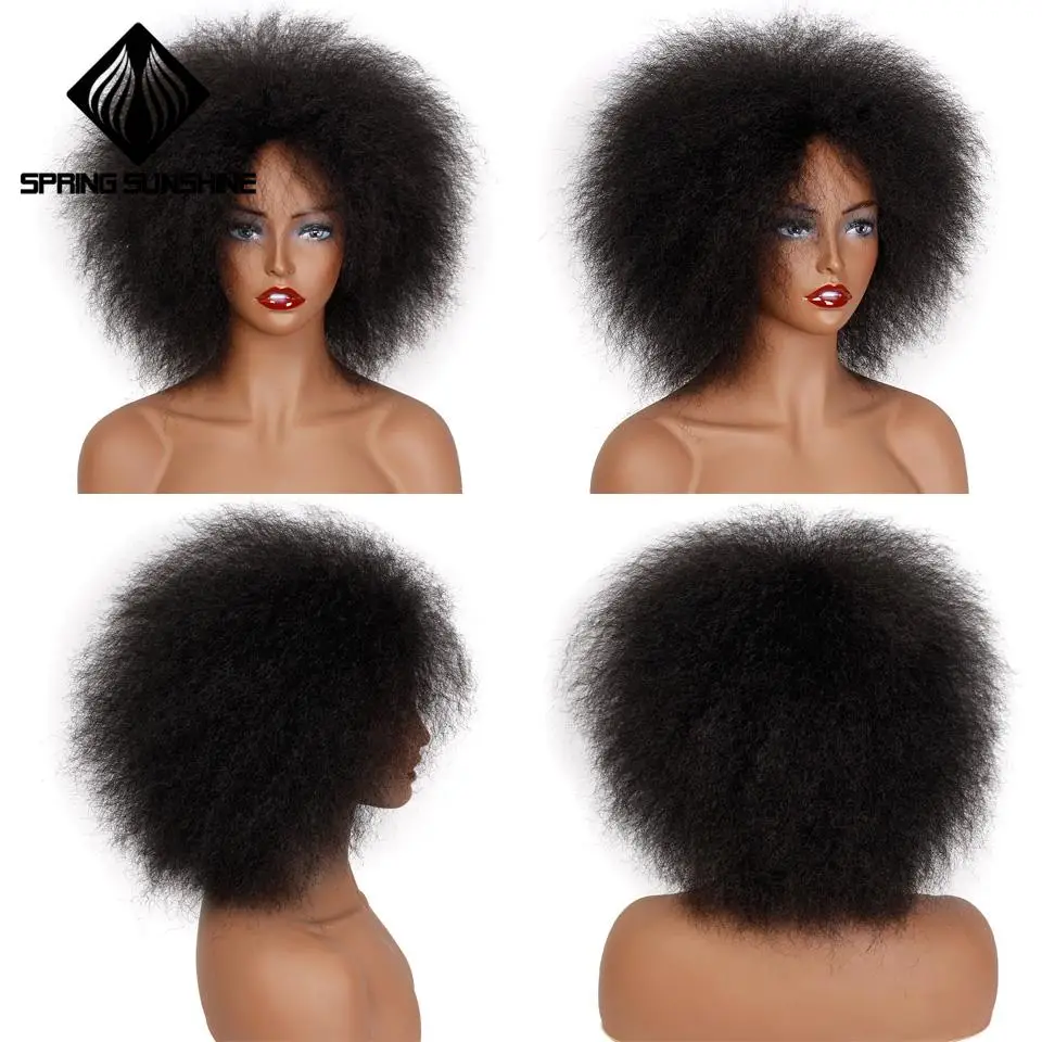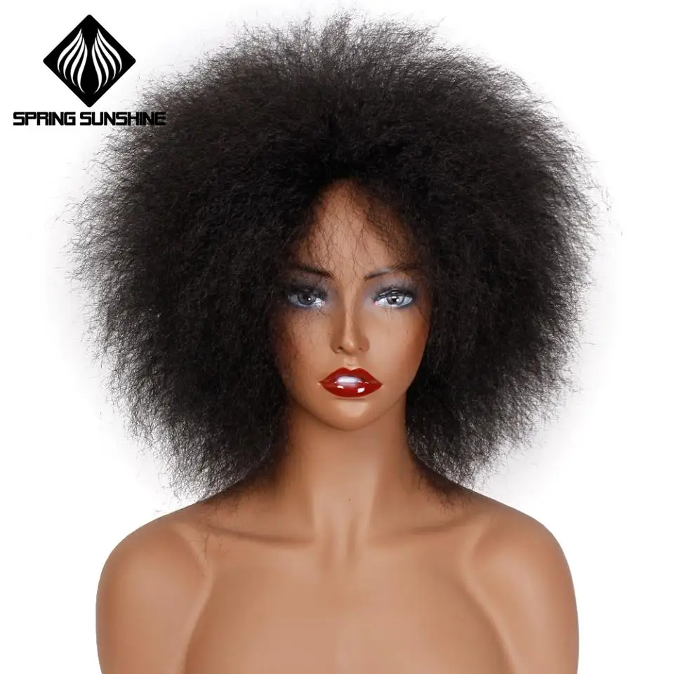 Весенние СОЛНЕЧНЫЕ синтетические 6 дюймов 100 г синтетический парик короткие парики афро Яки прямые черные волосы для афроамериканских женщин