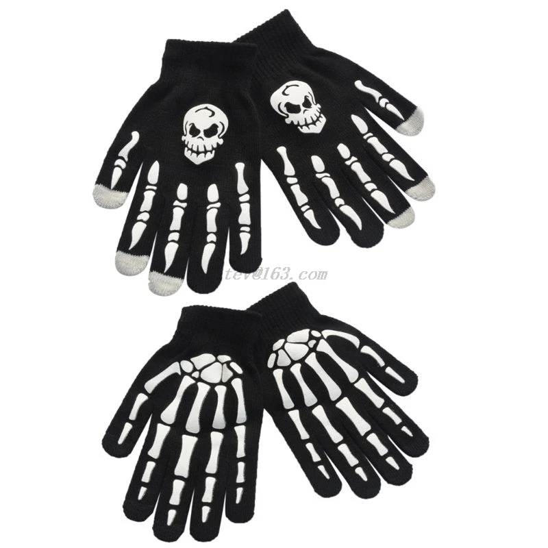 Зимние перчатки унисекс для взрослых и детей, для езды на велосипеде, с полными пальцами, для Хэллоуина, ужас, Череп, коготь, скелет, противоскользящие резиновые уличные варежки, гетры на запястье