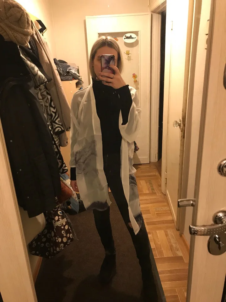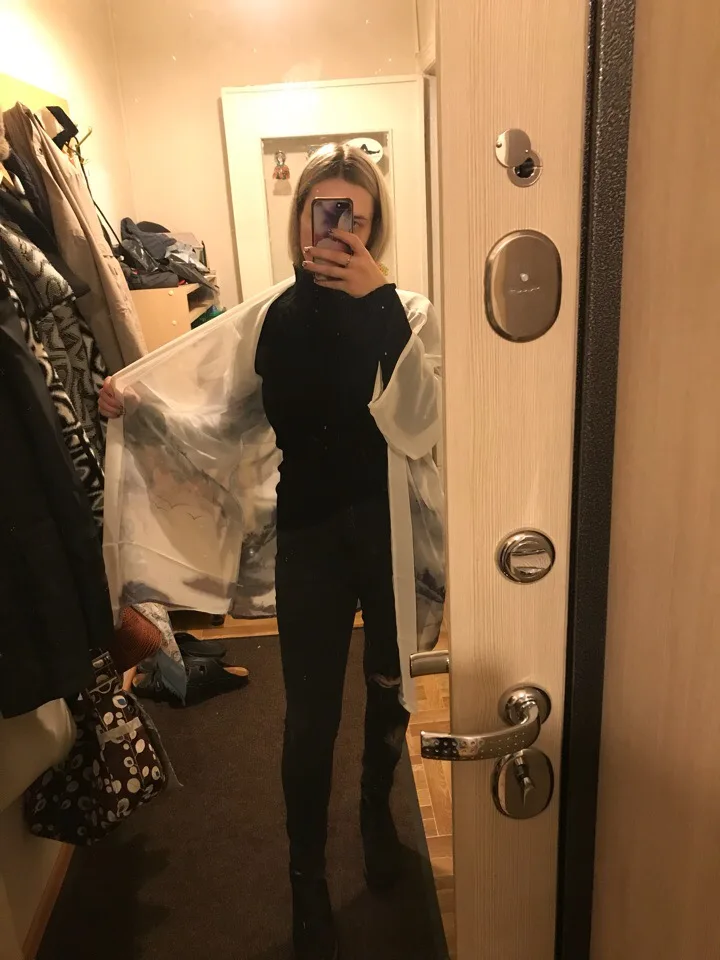 Кимоно заказывала 11.11.2020, заказ пришел даже раньше ориентировочных сроков - 23.11.2020 уже был в пункте выдачи. Пришел товар в черном плотном пакете, а внутри полупрозрачный очень удобный зип-пакет. Фото делала сразу после получения, как раз наглядно на черной кофте можно увидеть как кимоно просвечивается (все как и должно быть). На ощупь материал очень приятный, никаких дефектов обнаружено не было. Я очень довольна!