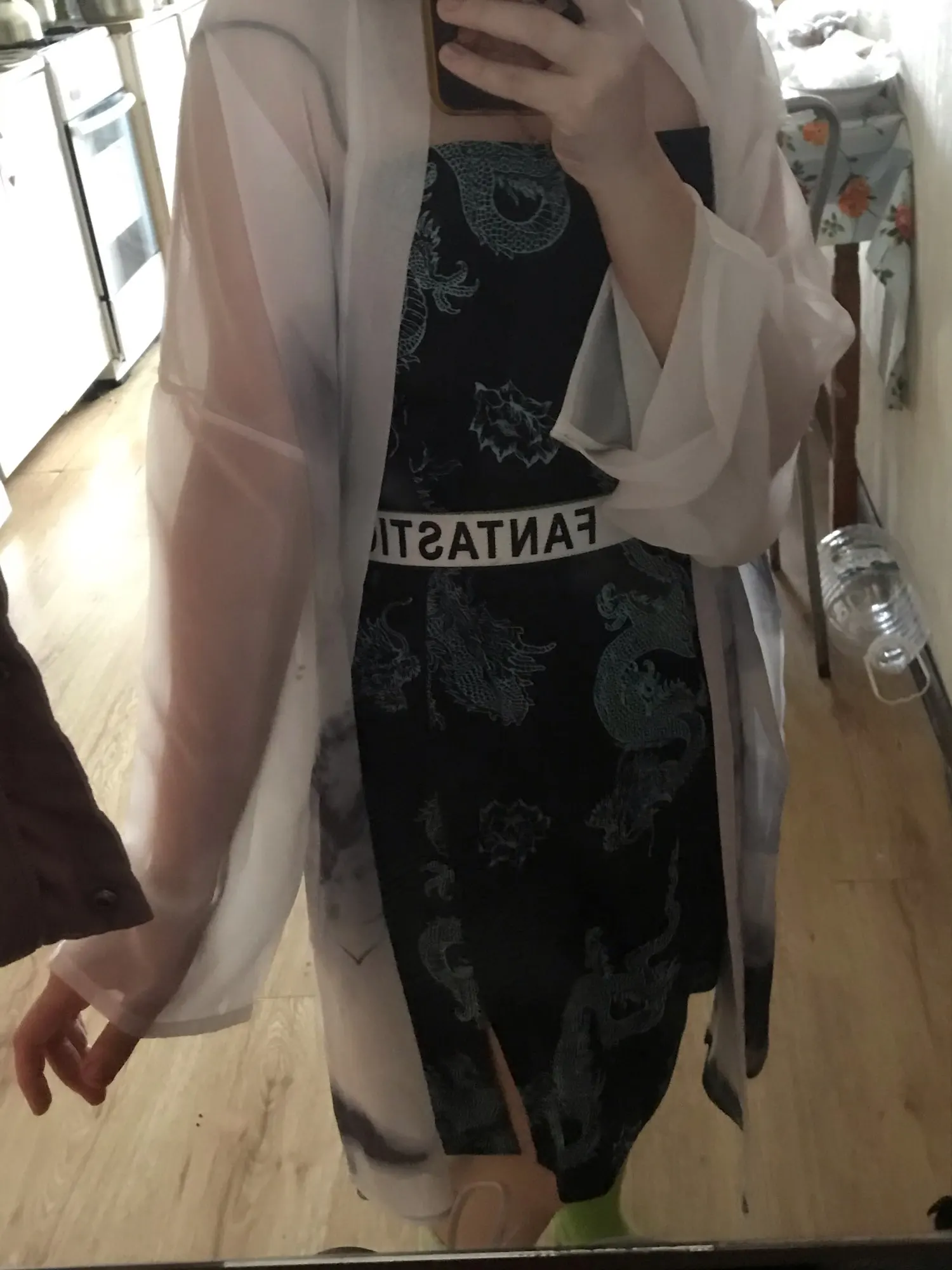 Очень красивое кимоно,хотя если честно, расхожусь во мнении,это халатик,кимоно или юката ?В общем - накидочка :D Мне понравилась: тоненькая, просвечивает как на картинке, особенно обрадовало качество швов - первый раз я вижу такое хорошее качество у вещи из Китая - осталась приятно удивлена,ведь для меня было табу заказывать вещи на айли,но благодаря комментариям я всё таки решилась,чего советую и вам!!!