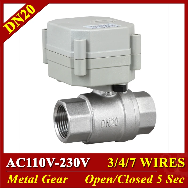 Электрические клапаны BSP или NPT 34 дюйма, моторные клапаны, AC110V-230V, 347, 2 канала DN20, металлические шестерни TF20-B2-C, быстрооткрывающиеся