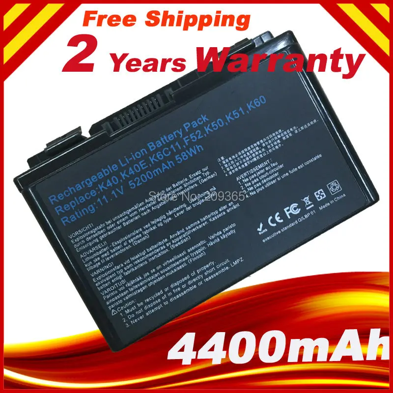 Ноутбук Батарея A32-F52 для Asus K50AB K70 F82 K50I K60IJ K61IC K50...