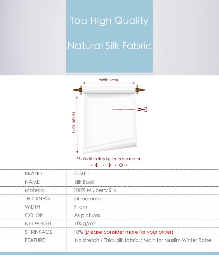 * Эта шелковая ткань в ширину 91 см, мы будем вырезать из направления длины в соответствии с количеством заказа.* Каждый заказ в непрерывной части.Если вам нужны 1,5 метров, то, пожалуйста, выбирайте 3 для 0,5 м, мы организуем доставку в комплекте целый кусок из шелковой ткани в 1,5 метров.