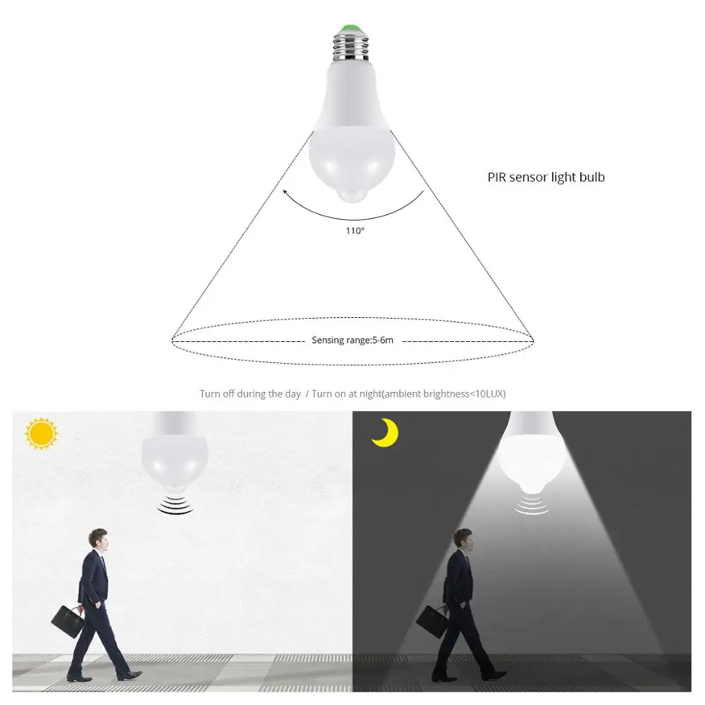 Светодиодная лампа с пассивным ИК датчиком движения E27, освещение ...