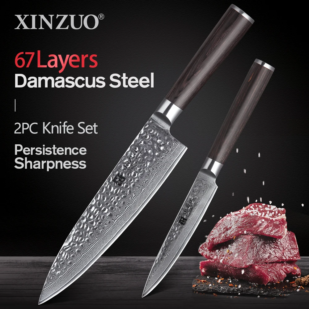 Набор японских кухонных ножей XINZUO VG10 из дамасской нержавеющей стали, 67 слоев, 2 шт.