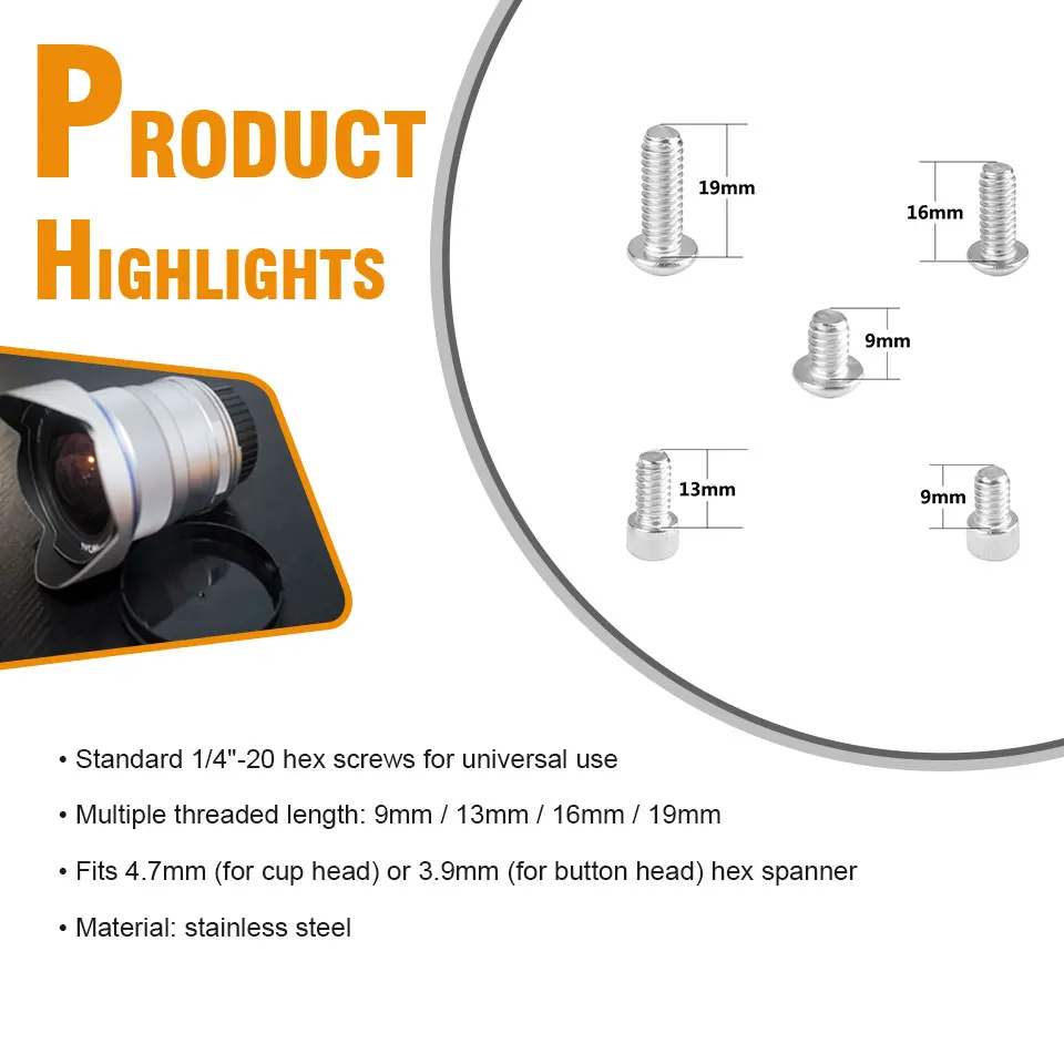 Стандартный шестигранный винт CAMVATE 14 дюйма-20 шт. (резьба 9 мм13 мм16 мм19 мм), для шестигранного ключа 4,7 мм (головка чашки)3,9 мм (головка кнопки)
