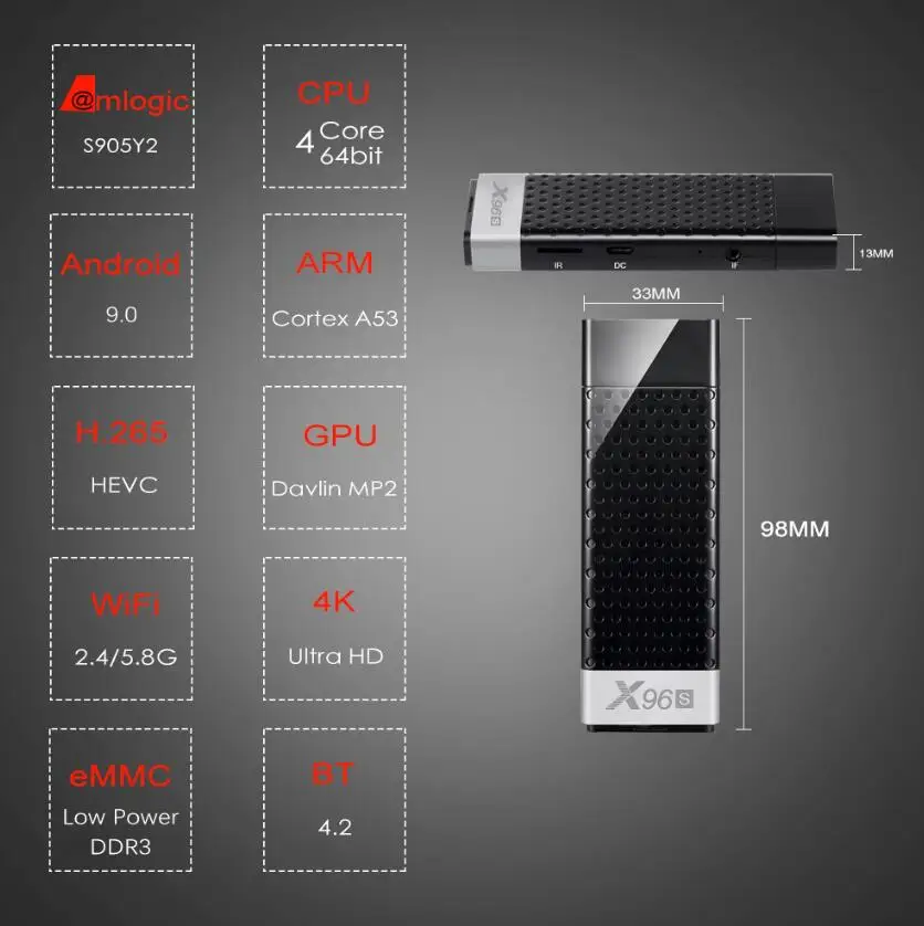 -Amlogic S905Y2Четырехъядерный ARM Cortex A53 до 2 ГГц