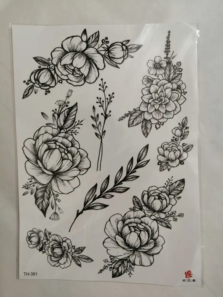 Розовый пион женский Грудь Большие татуировки наклейки тело руки листья девушки татуировки Временные флеш цветение сливы сексуальные цветы татуировки Поддельные