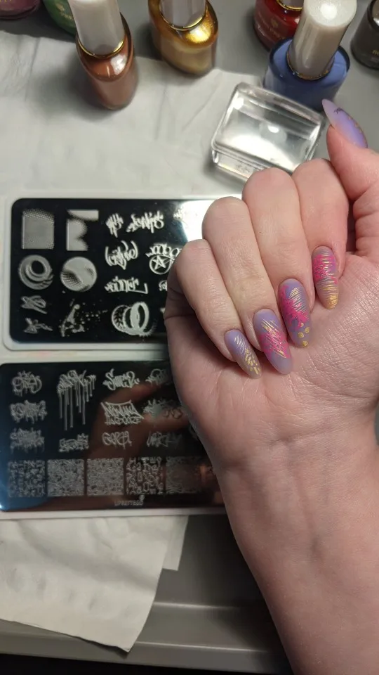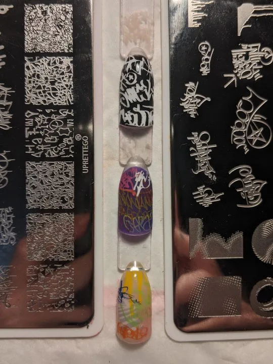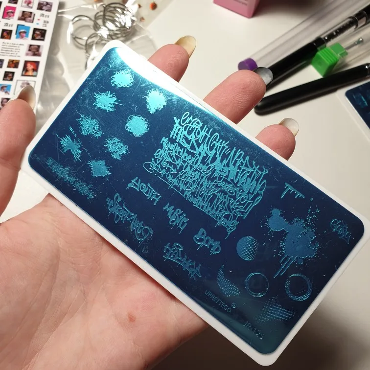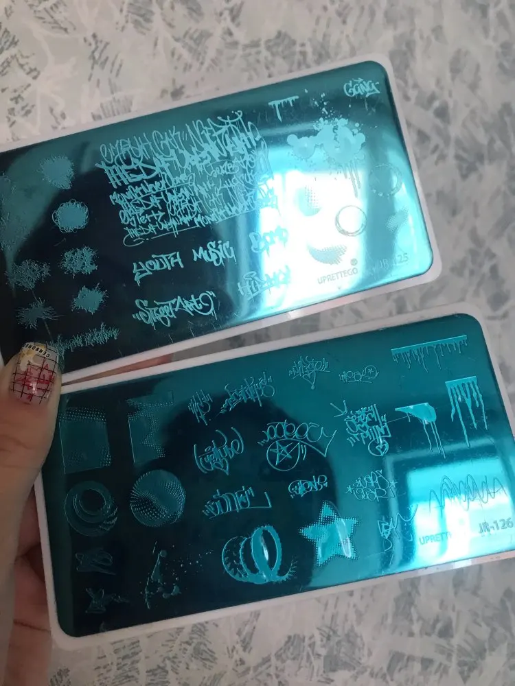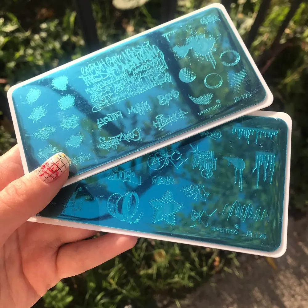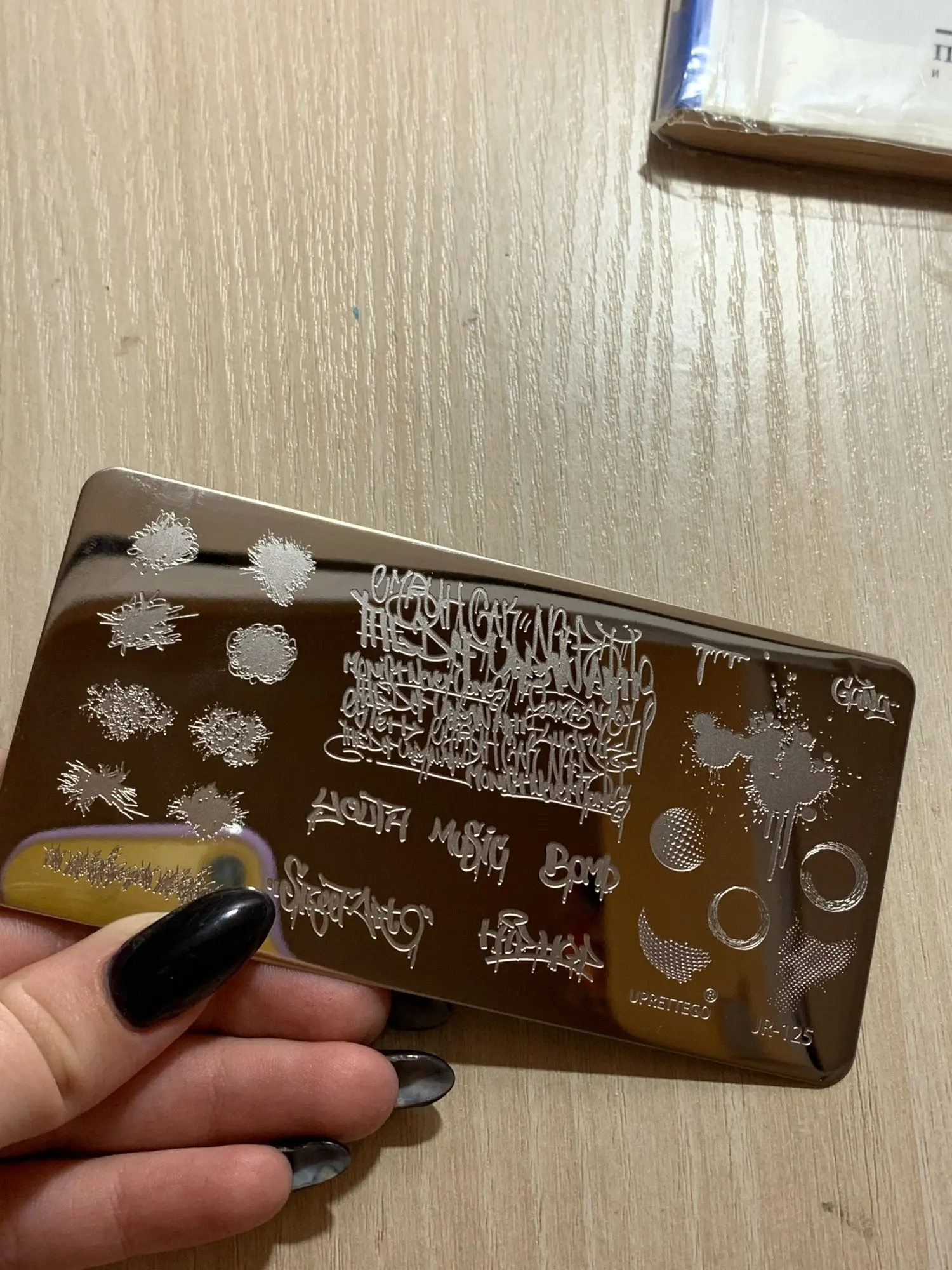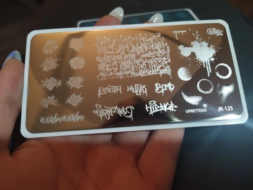 Прекрасные пластины! За 140 рублей просто шикарное качество! Заказываю постоянно, очень довольна. Современные дизайны, гравировка чёткая, очень ждала именно эту пластину, уж очень давно хотела сделать себе маникюр с граффити! Доставка в Москву месяц, к покупке рекомендую однозначно. Ловите идею маникюра!