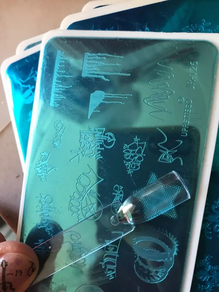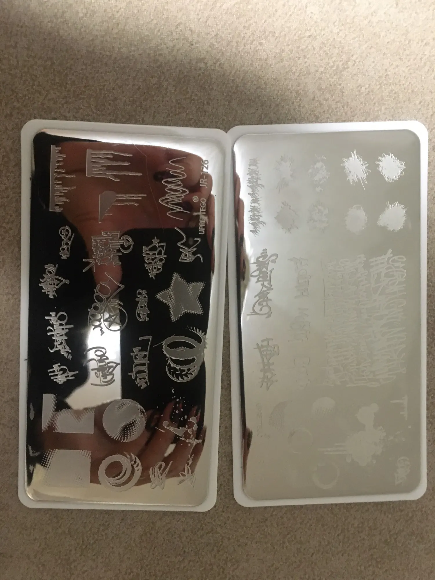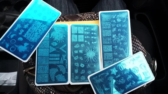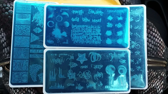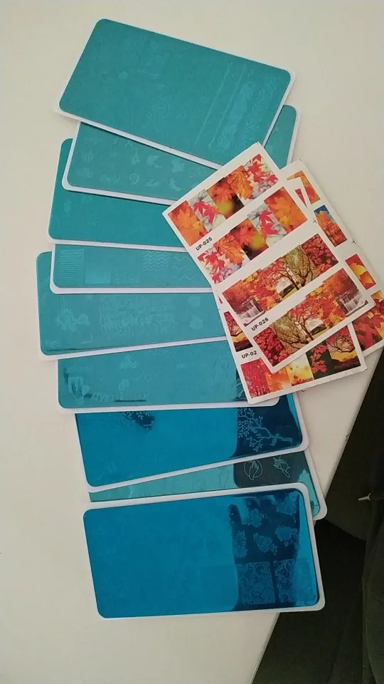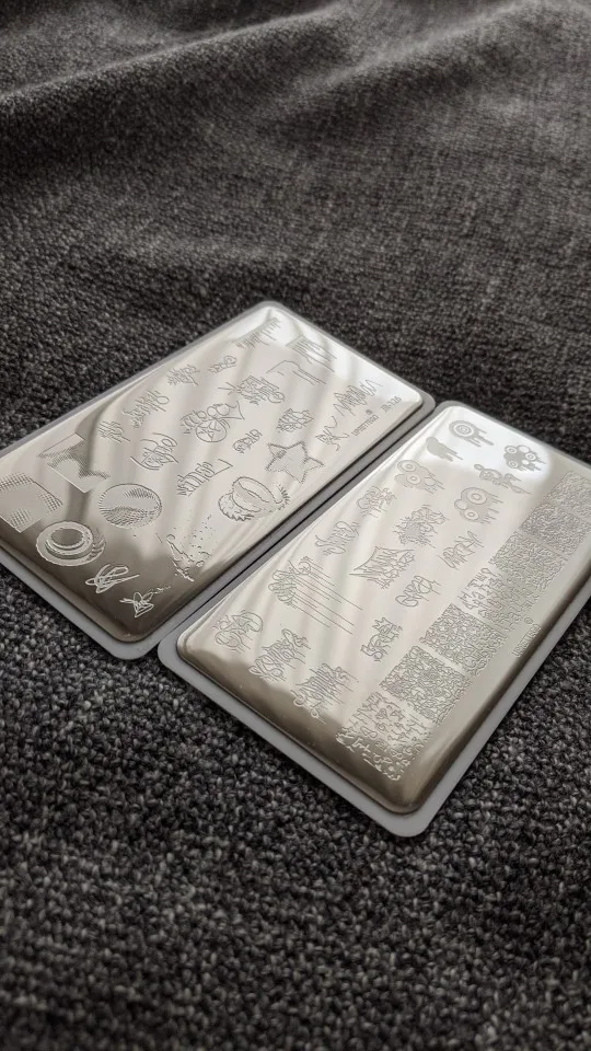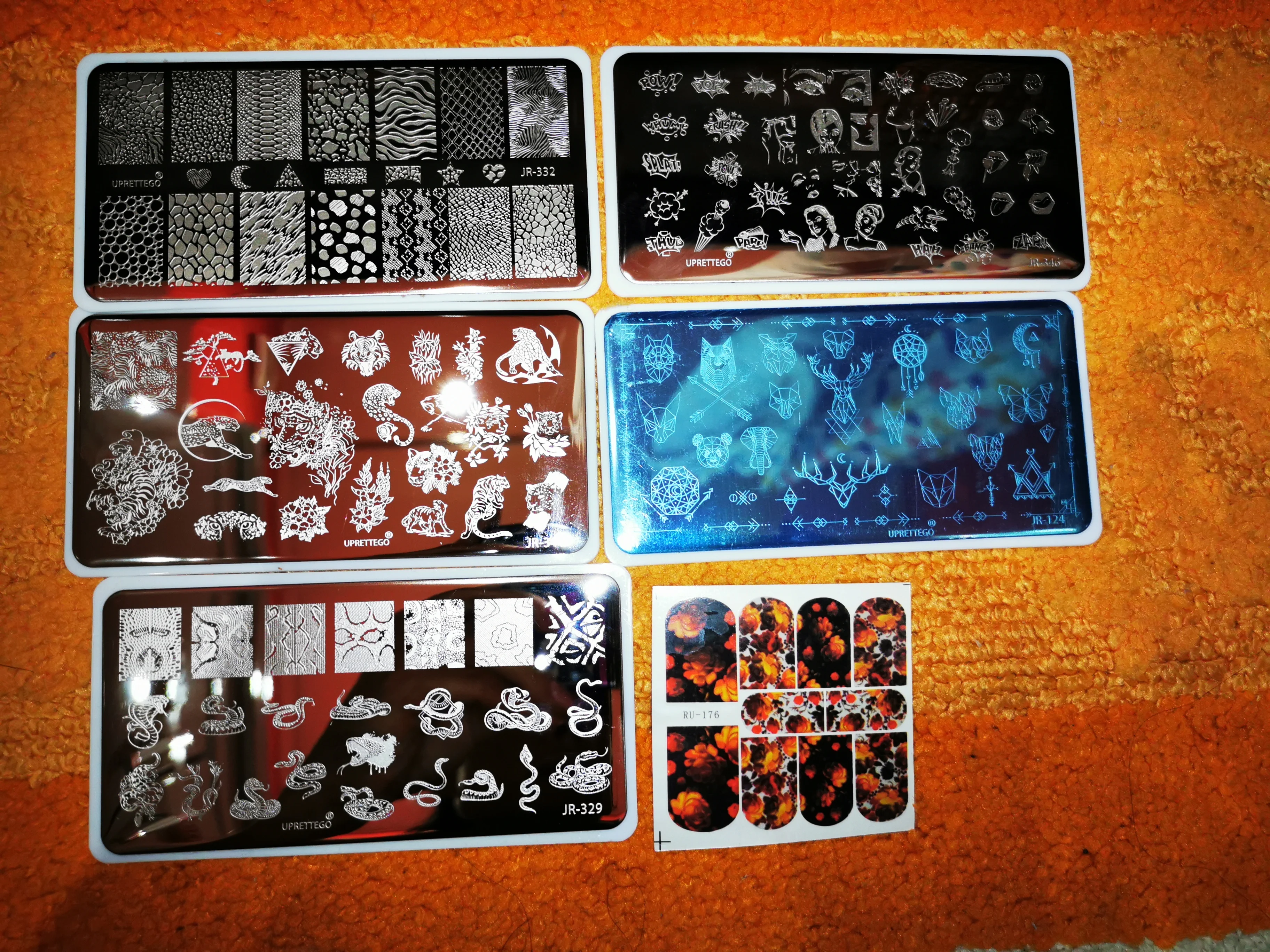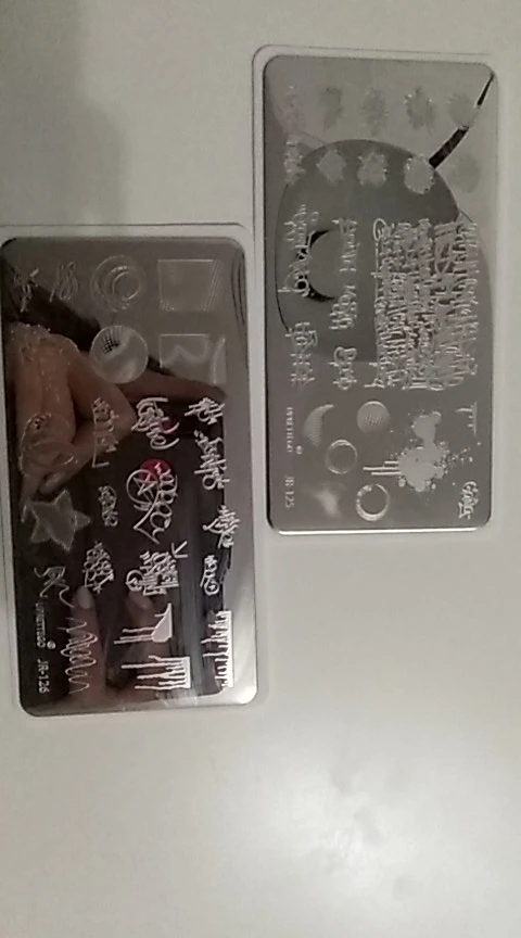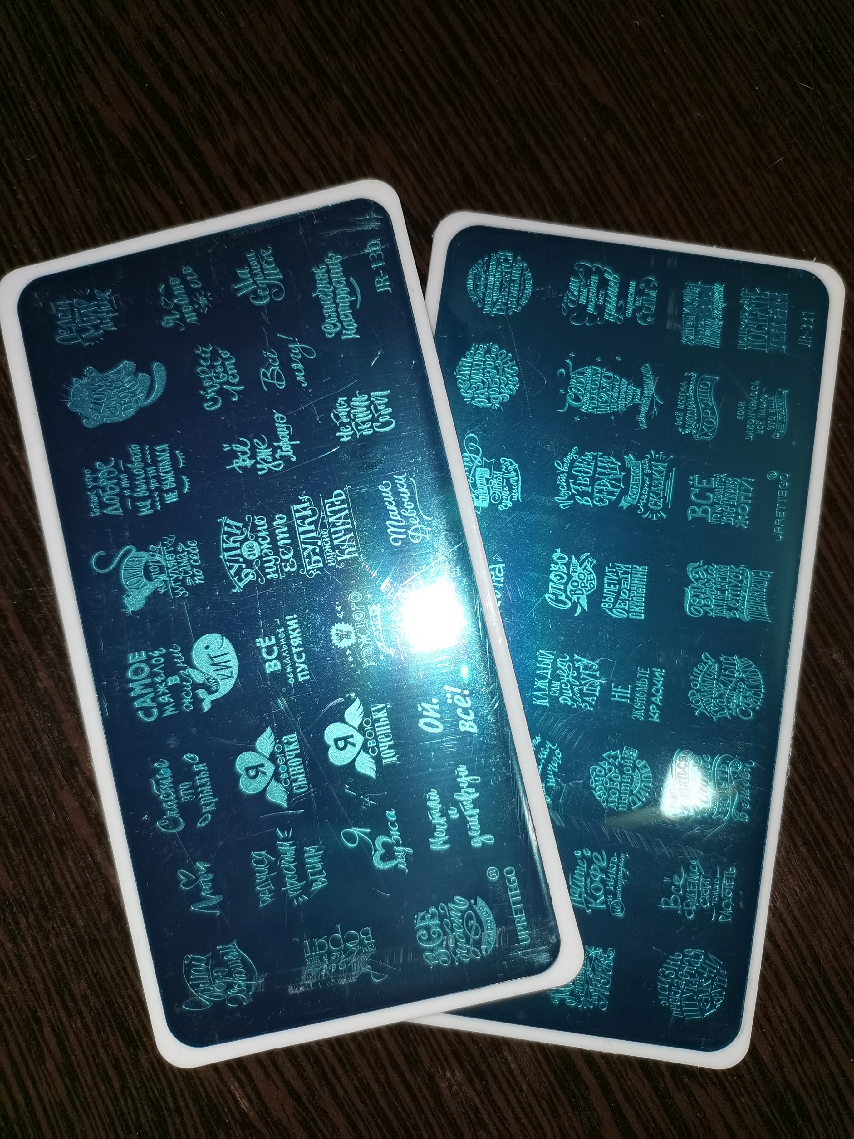 Пластины отличные, гравировка глубокая, четкая. одна после снятия пленки была немного поцарапана, но на качестве печати это никак не отразилось. Однозначно стоит своих денег. Рисунок интересный, никогда такого не видела, везде бабочки цветочки.... Дошла посылка за 2 недели, супербыстро, как по мне, упакованы в пупырку и бумажный пакет. По РФ не отслеживалась, но уведомление с почтового отделения пришло сразу в приложении почты.