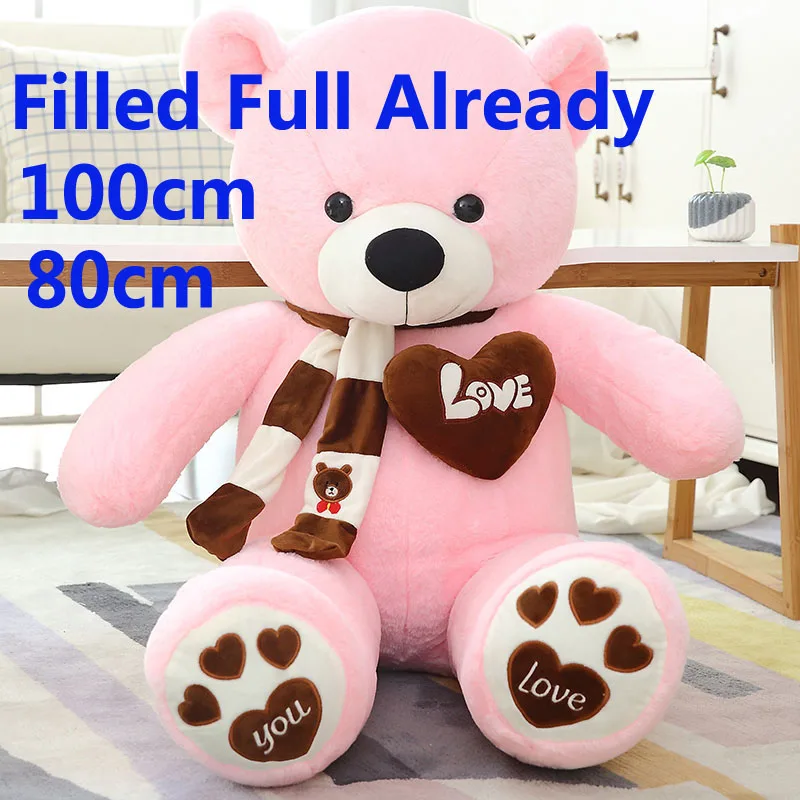 80-100 см 1 м гигантские мишки тедди с шарфом мягкие животные игрушка розовый большой медведь Детский подарок на день рождения Рождественская подушка кукла: