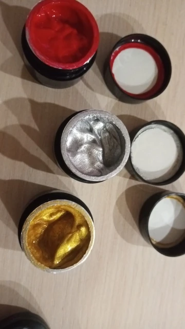 то ли у меня руки не с тог места - то ли краска плохая. С серебряной так и не поняла как работать. Хотя вроде и густая и плотная. Все остальные очень хорошие, отпечатываются по два, а то и три раза. Очень насыщенные цвета. Золото ещё не пробовала, тоде есть сомнения.