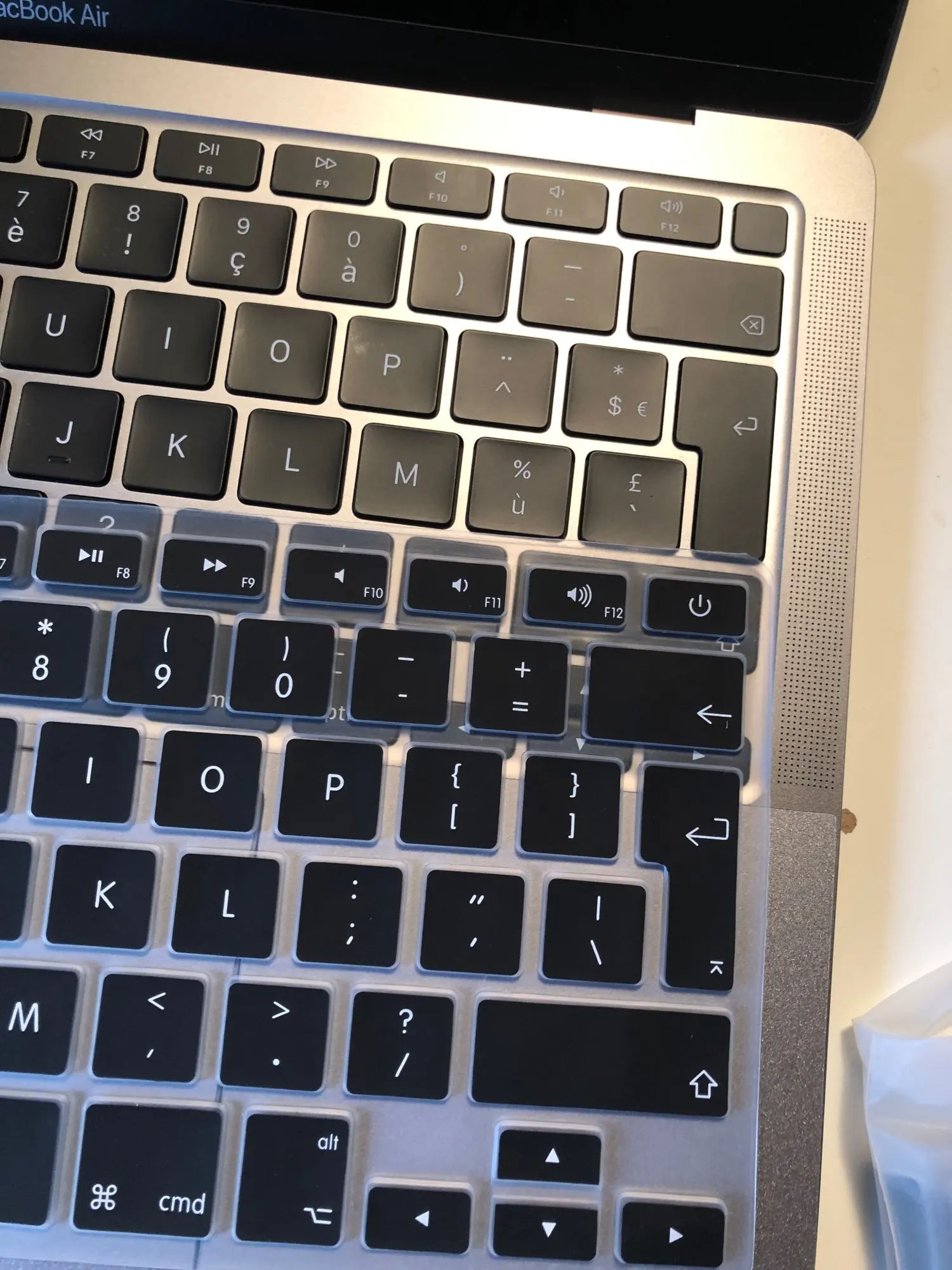 No es exactamente el tipo de teclado que pedí para en MacBook Air, las teclas superiores no se corresponden con las de mi teclado y aparecen desplazadas y en inglés los símbolos. Una pena.
