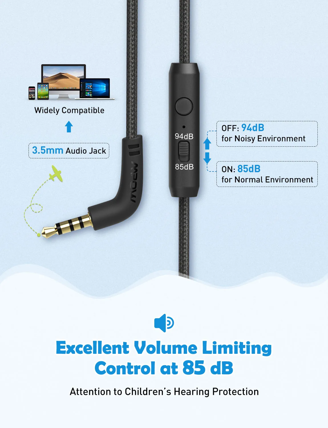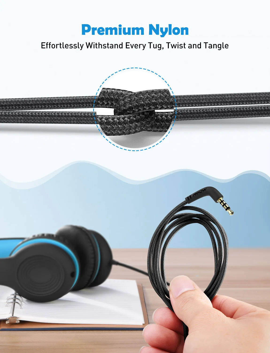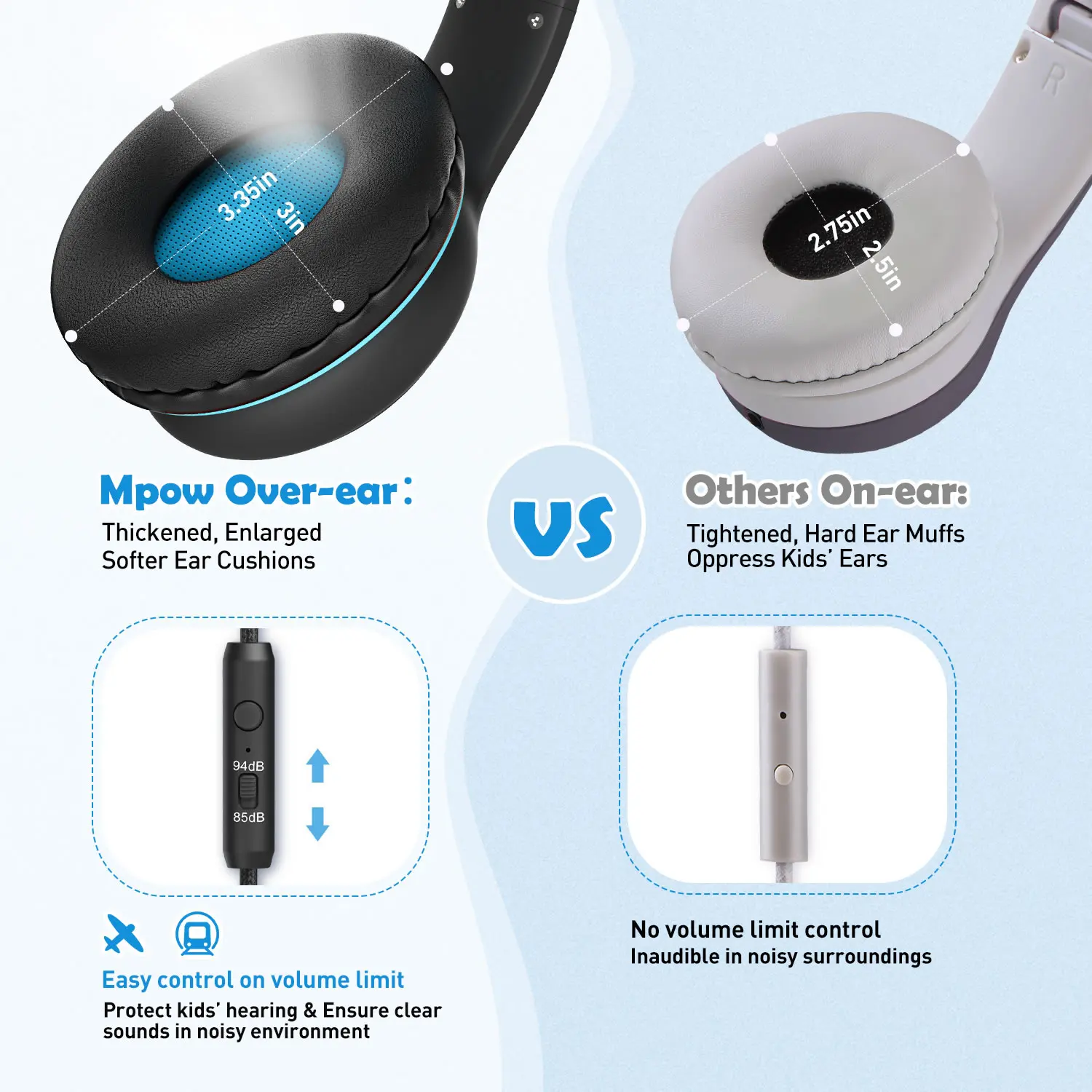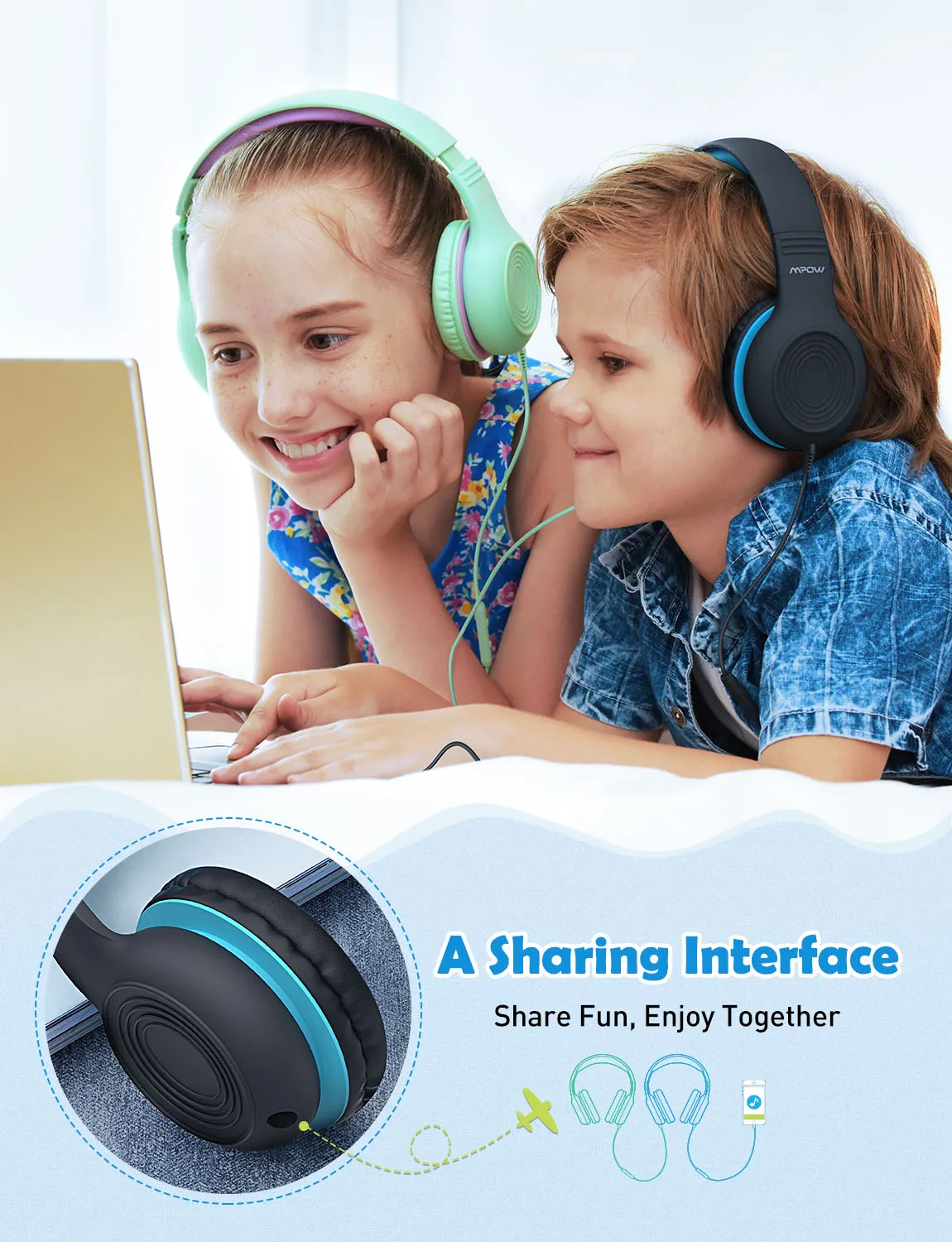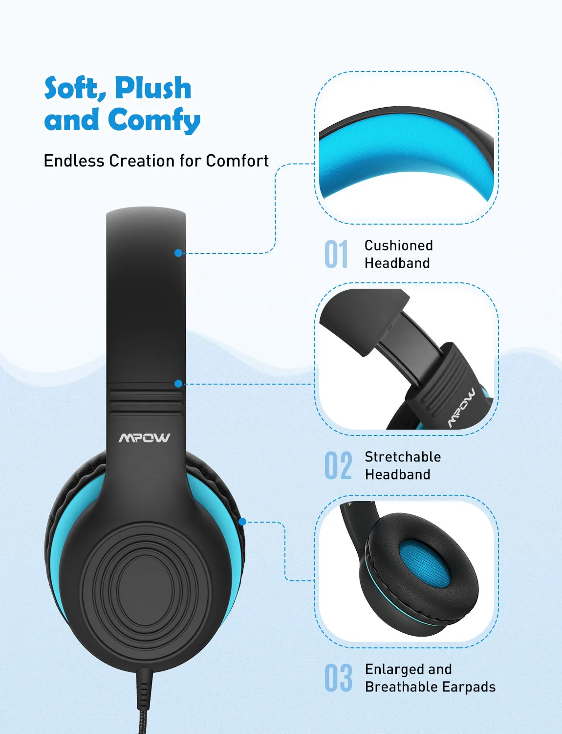 Проводные наушники Mpow CH6S для детей, Накладные наушники с микрофоном, максимальный уровень 85 дБ, из пищевого материала, для iPad, Kindle Phone