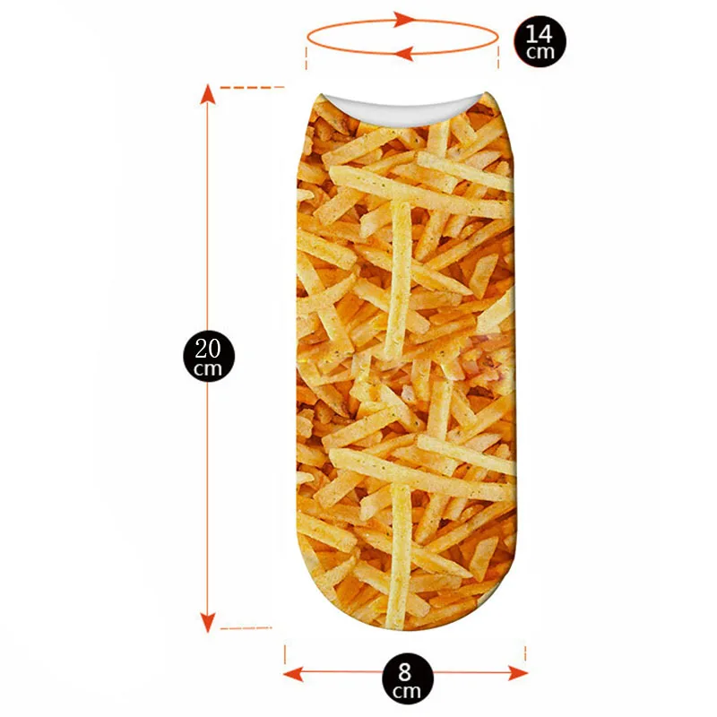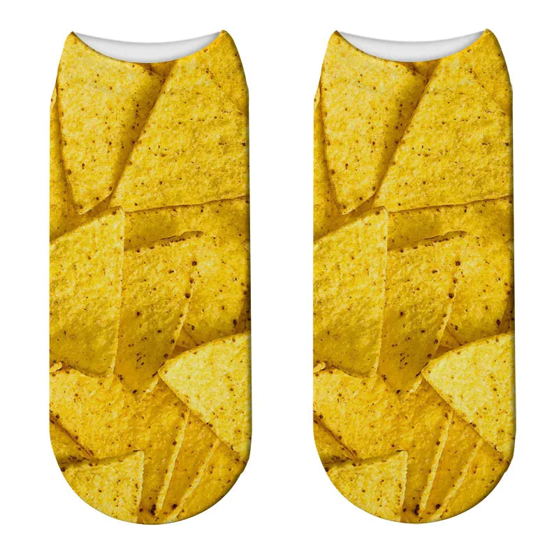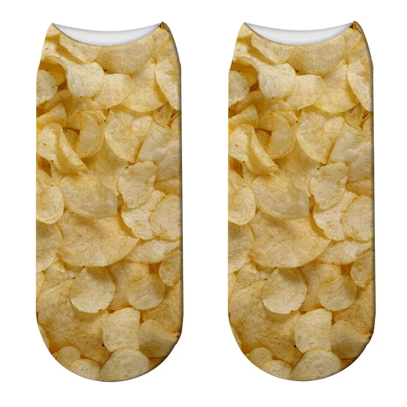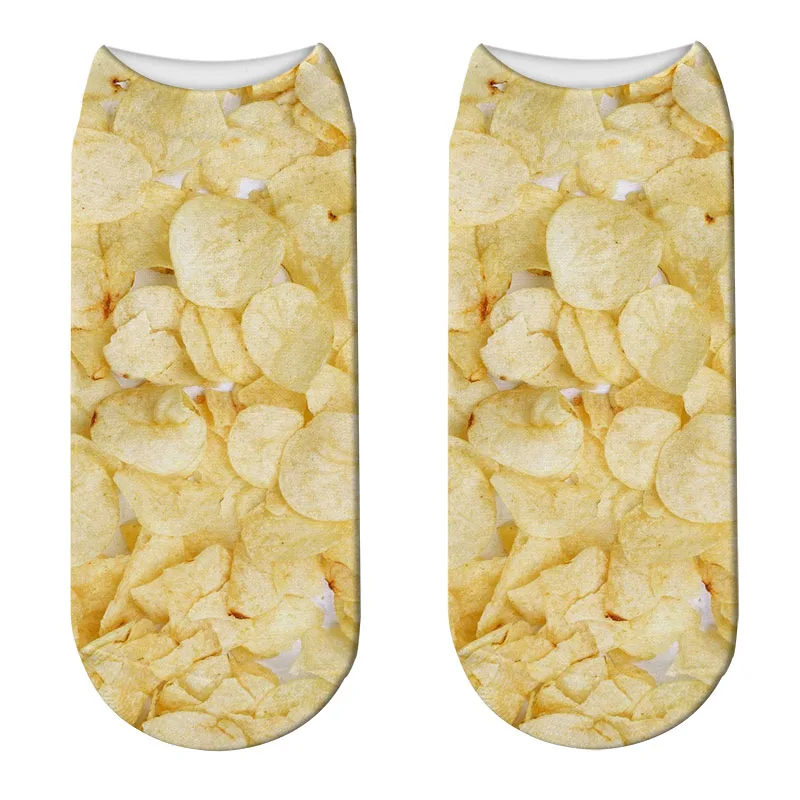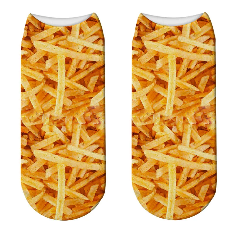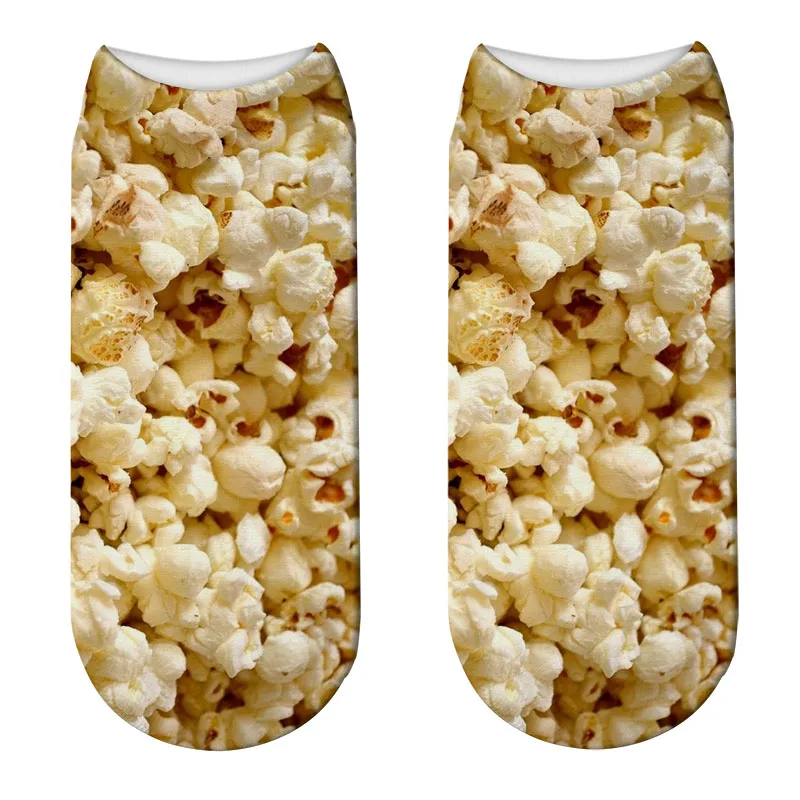 Носки женские короткие с принтом в виде картофеля фри и попкорна