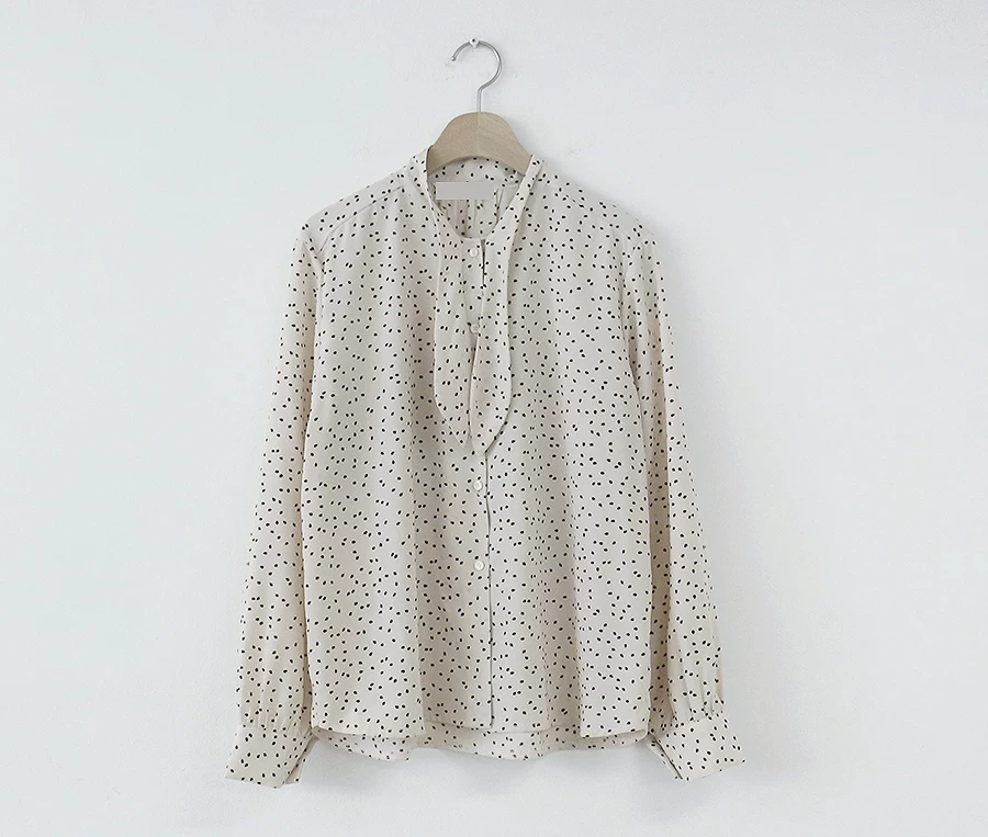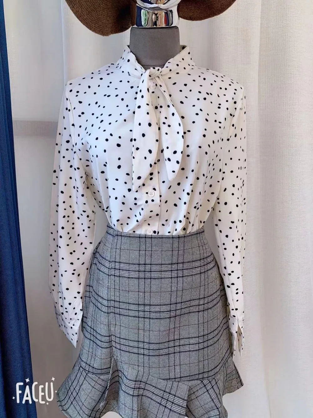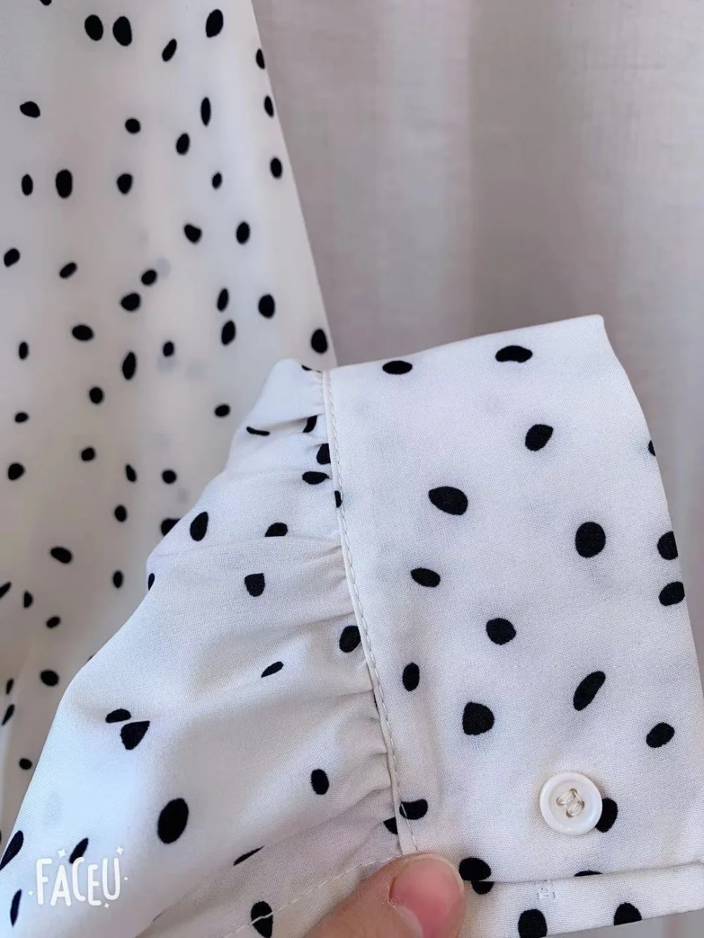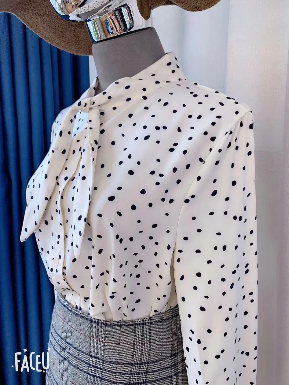 Очень красивая блузка, только точки на ней не белые, а бежевые. Но это ещё красивее! Пришло быстро