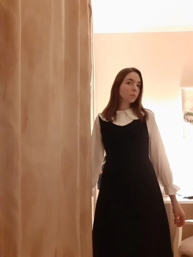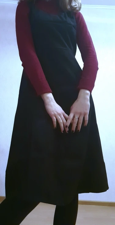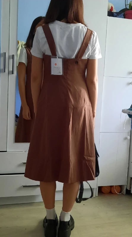 Прибыло очень быстро, недели за 2 в СПб. Ткань приятная на ощупь, не слишком дешевая, длина лямок регулируется двумя пуговками, на рост 167 чуть ниже колена. Теперь я выгляжу как прилежная ученица из пансионата для девочек. inst @annagarlyeva