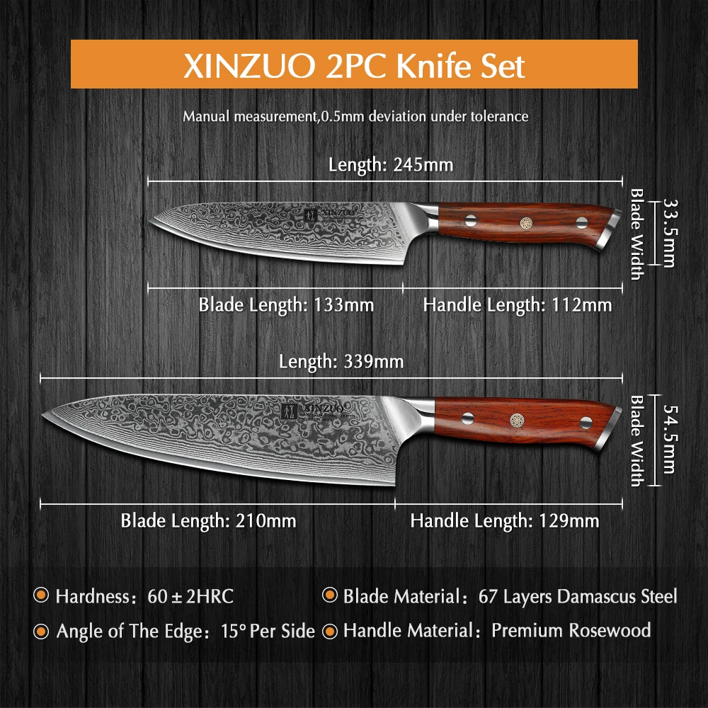 Набор кухонных ножей XINZUO 2 шт., поварской нож из дамасской стали, универсальные кухонные приборы из нержавеющей стали с ручкой из розового дерева