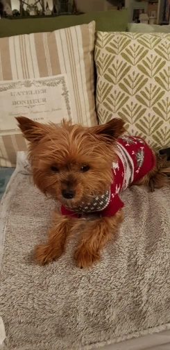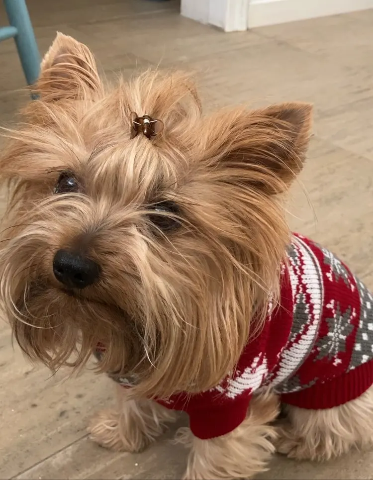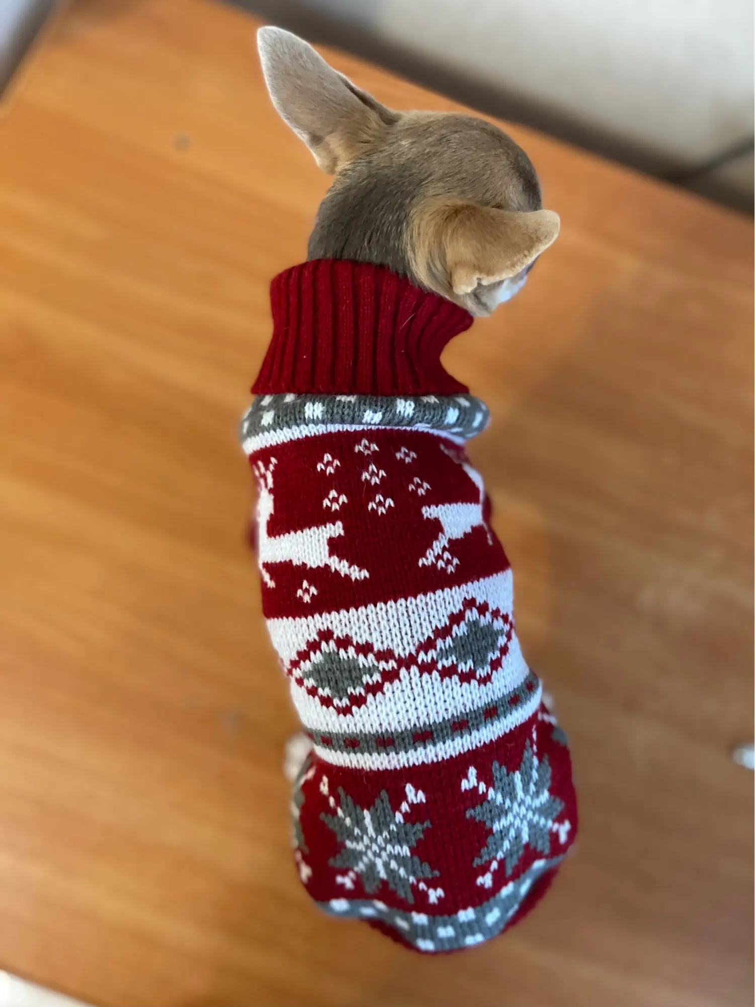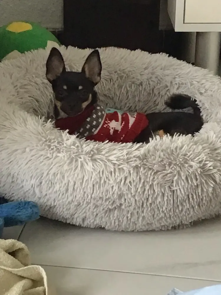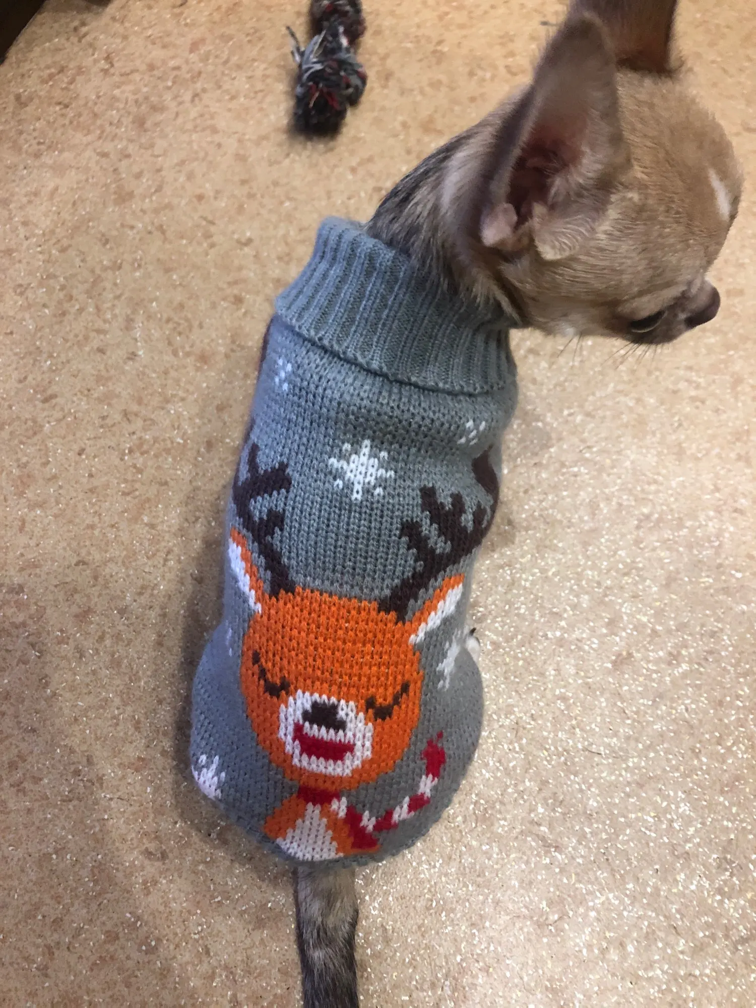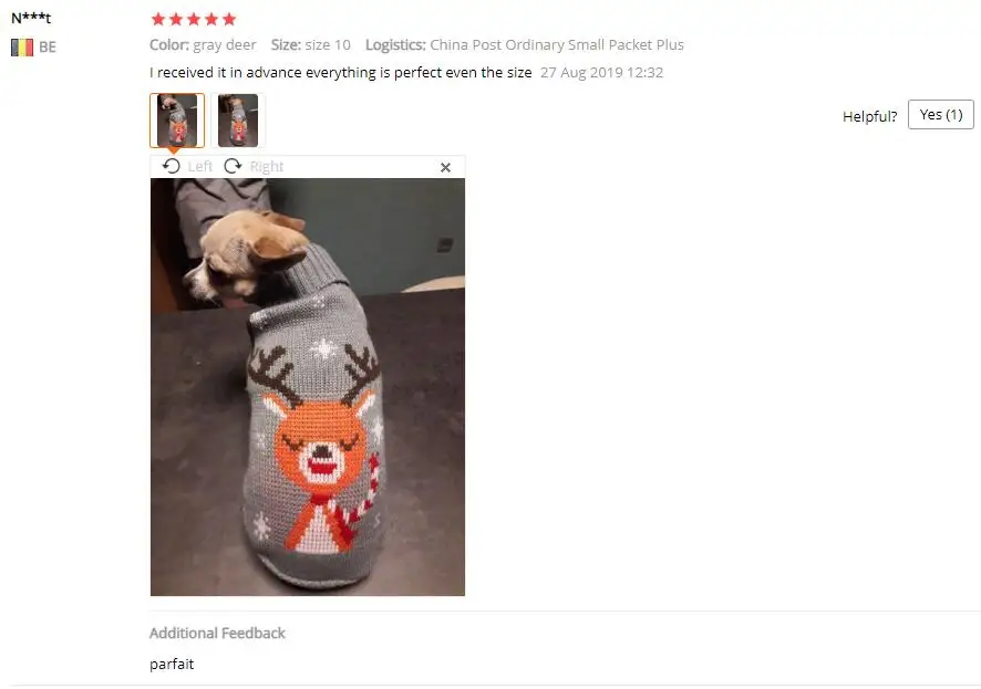 Perfecto! La talla corresponde para mi Yorkshire de 4.3kg, , Llegó en dos semanas, antes del tiempo previsto. Corté las tiras para las patas traseras, no son necesarias porque el suéter es ajustado. Excelente relación calidad/precio.