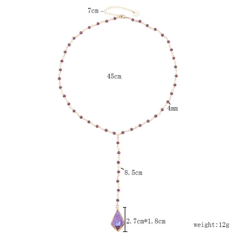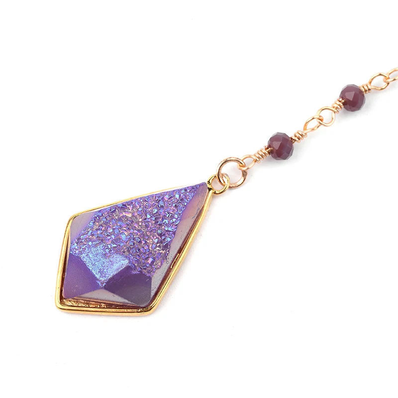 Длинное женское ожерелье BOJIU с подвеской из друзы, цепочка, ювелирные изделия, Крошечные Хрустальные Бусины, богемное ожерелье из фиолетового драконового камня, женский подарок NKS211