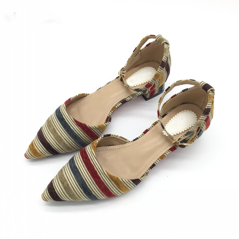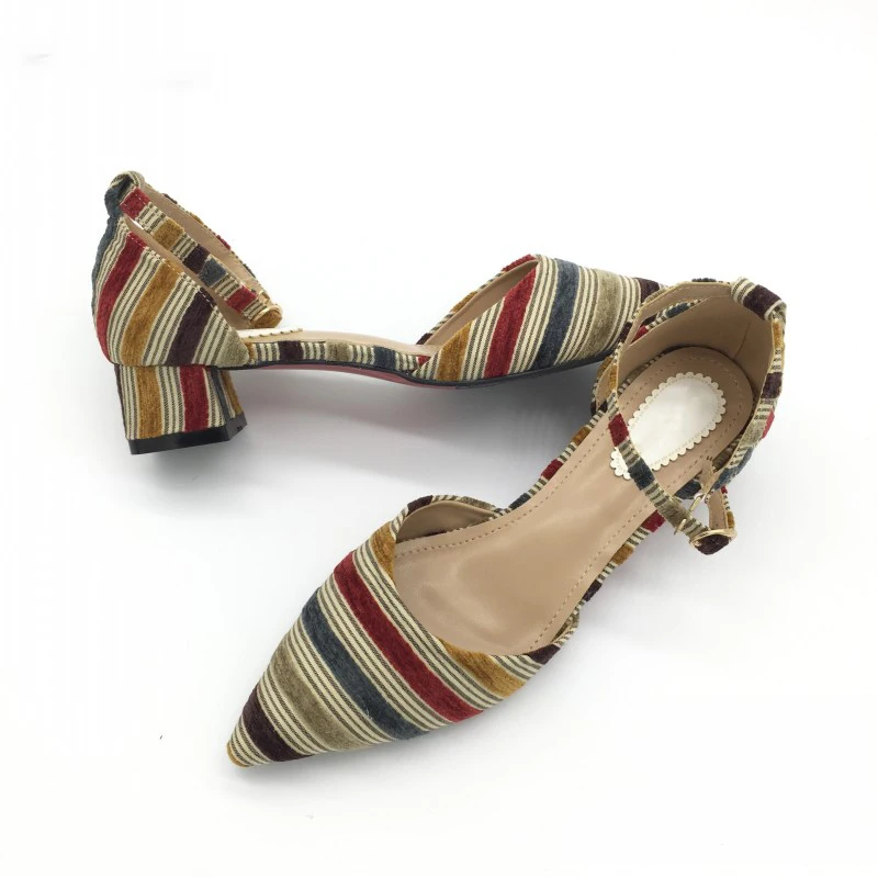 Туфли-лодочки CEYANEAO женские, квадратный каблук, ремешок с пряжкой, в полоску, рабочая обувь, E792, новейшая модель, лето