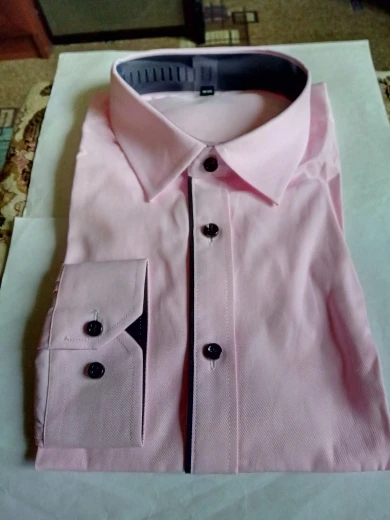 рубашка очень качественного пошива, ткань как бы блестящая , 44 размер чуть больше заявленного , это просто отлично