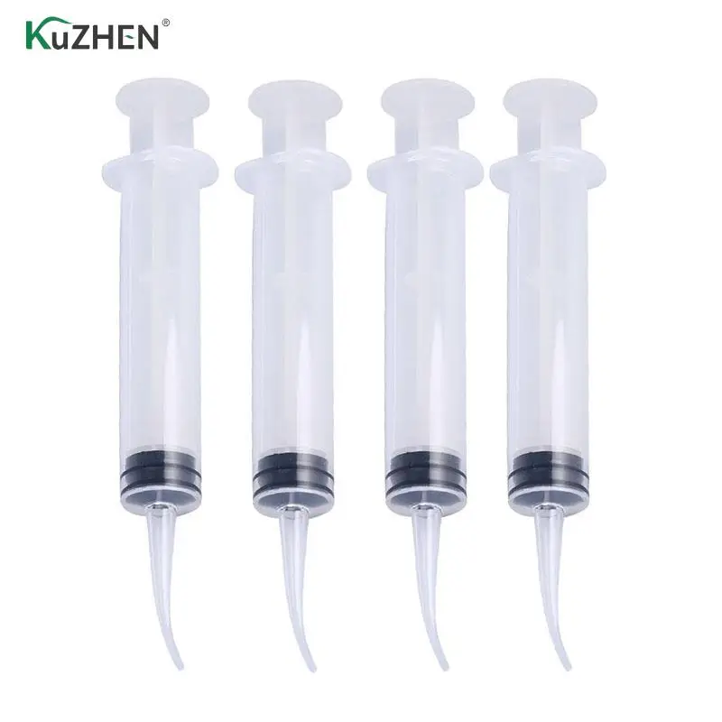 Одноразовый прозрачный шприц для орошения зубов с изогнутым наконечником, уход за зубами, отбеливание зубов, гигиена полости рта, 4 шт.упак.