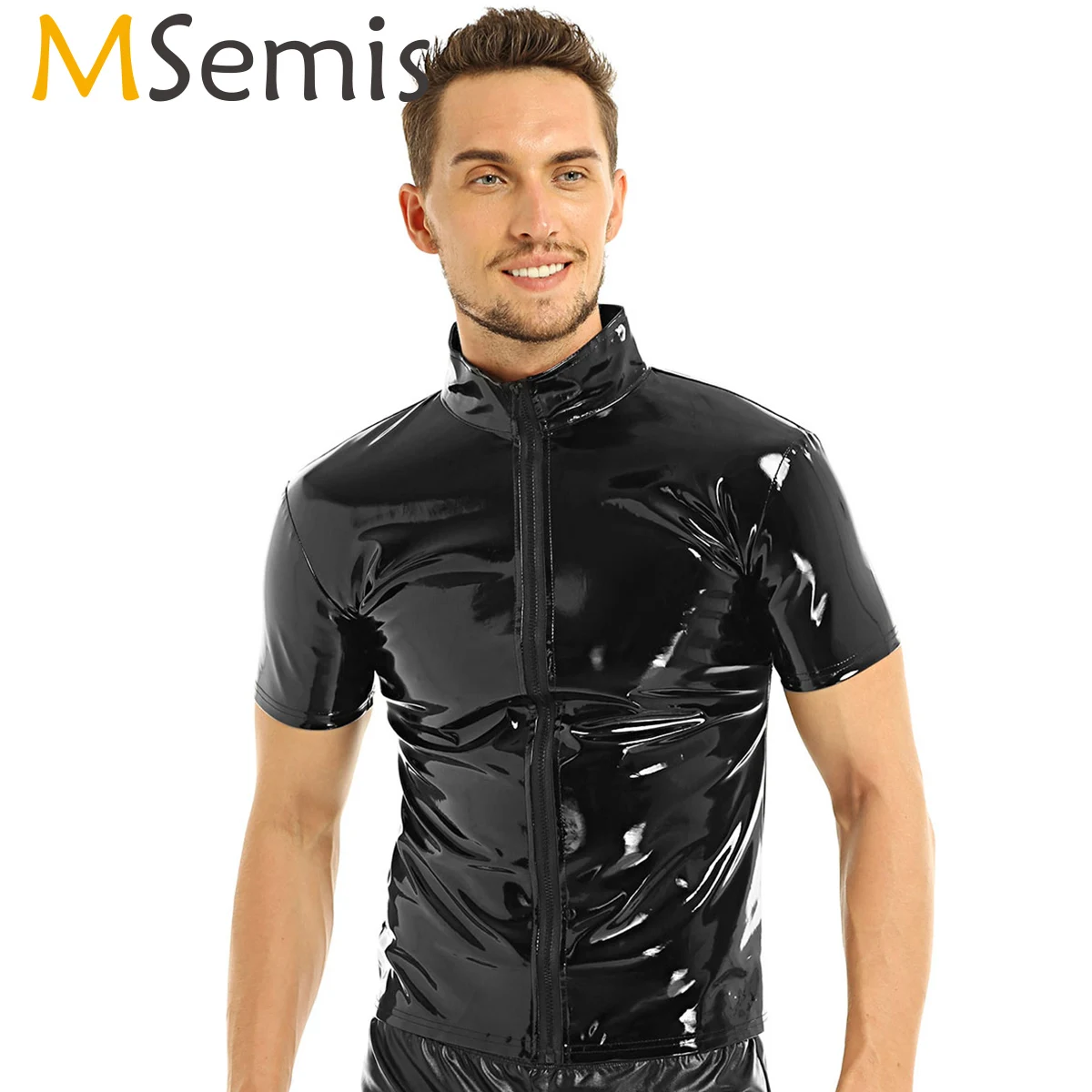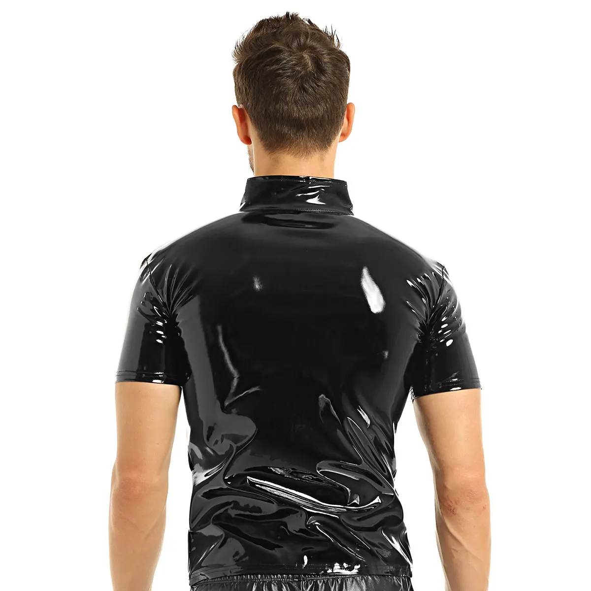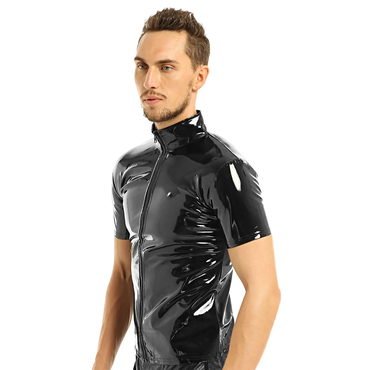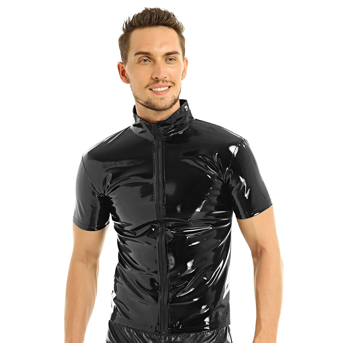 Особенности:Блестящая футболка с металлическим рисунком в стиле унисекс; Новинка и Стильная приталенная одежда.Короткие рукава и воротник-стойка, спереди молния для удобства одевания.Глянцевый внешний вид, удобный и приятный для кожи, привлекает внимание в толпе.Идеально подходит для модных, вечерние, костюмных, ночных клубов, уличной или повседневной одежды.Перед покупкой проверьте таблицу размеров, рекомендуется ручная стирка.