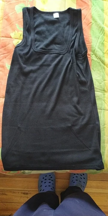 Майка с очень странным декольте! Больше похожа на женскую. Размер надо брать больше на один хотя бы!