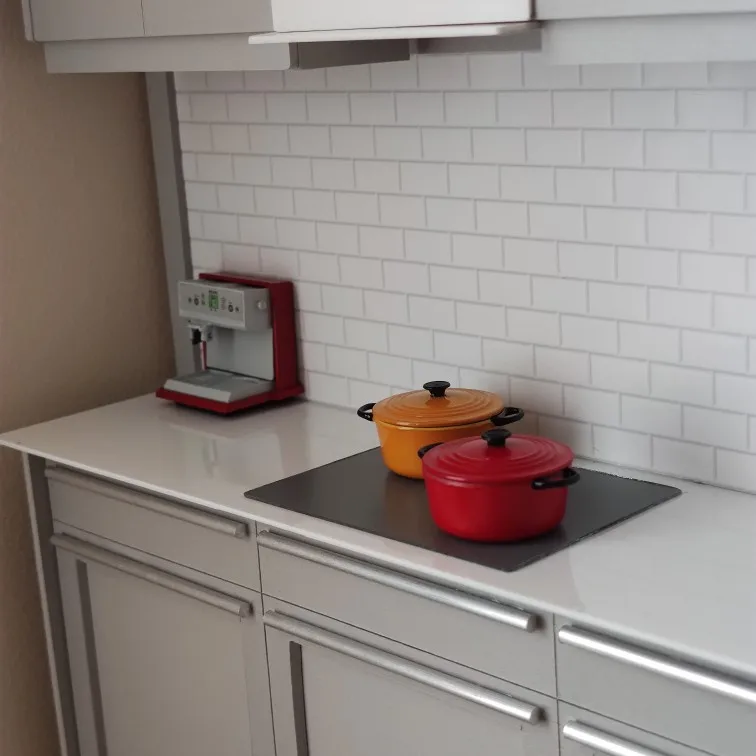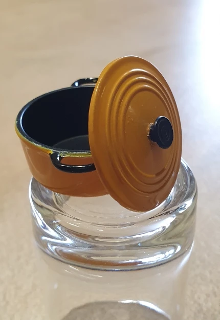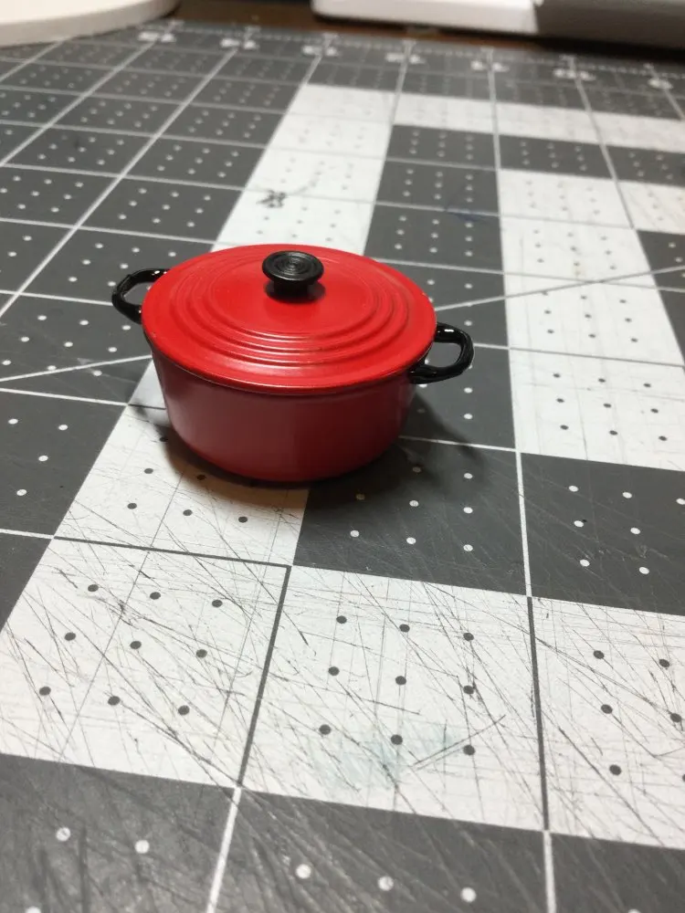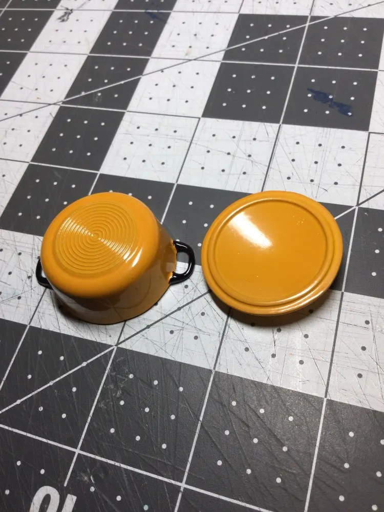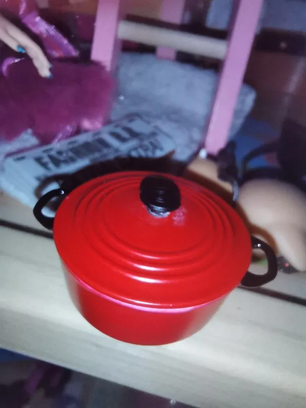 Для 1/12 домика. Прекрасные кастрюли! Хорошо сделано и упаковано. Крышка легко соскальзывает с кастрюли.