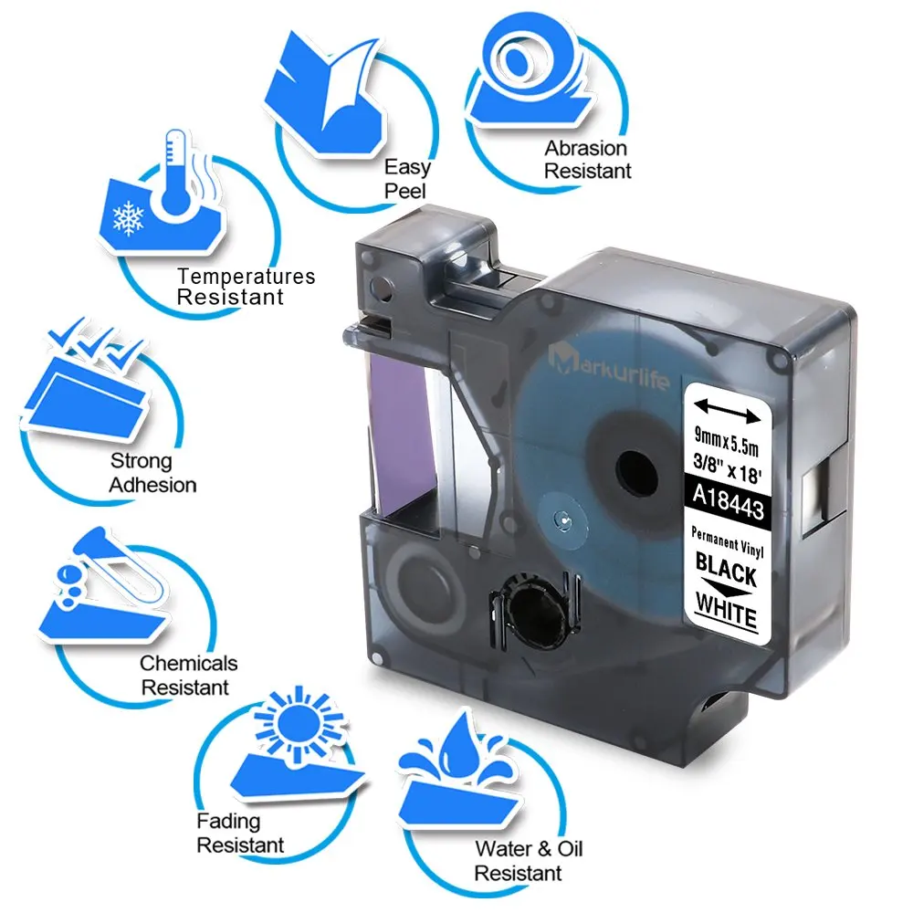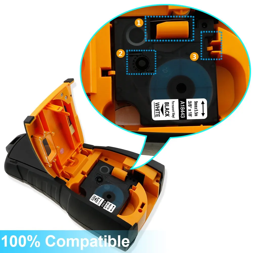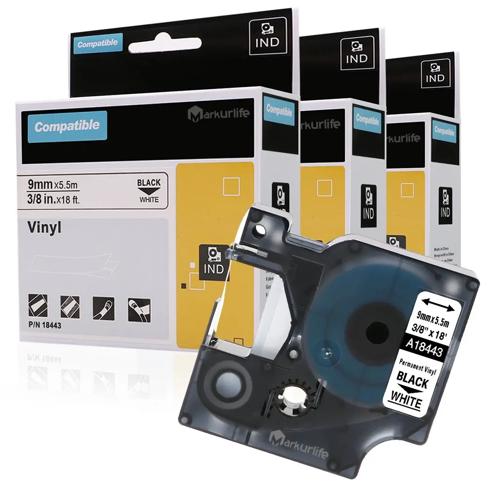 3 упаковки, совместимые с Dymo Rhino этикетки ленты 18443 виниловые этикетки 9 мм * 5,5 м для Rhino 5200 4200 6000 и LabelManager этикетки производители