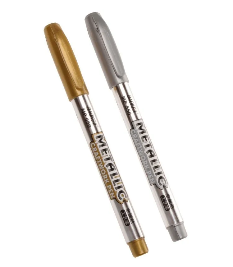 Маркеры для творчества, золотистые и серебристые металлические ручк...
