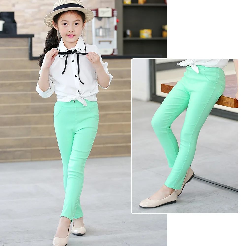 Штаны для девочек, эластичные однотонные, ярких цветов, на веснуосе...
