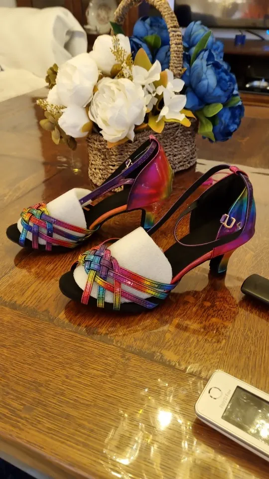Туфли женские для латиноамериканских танцев, хамелеон блестящий, дл...
