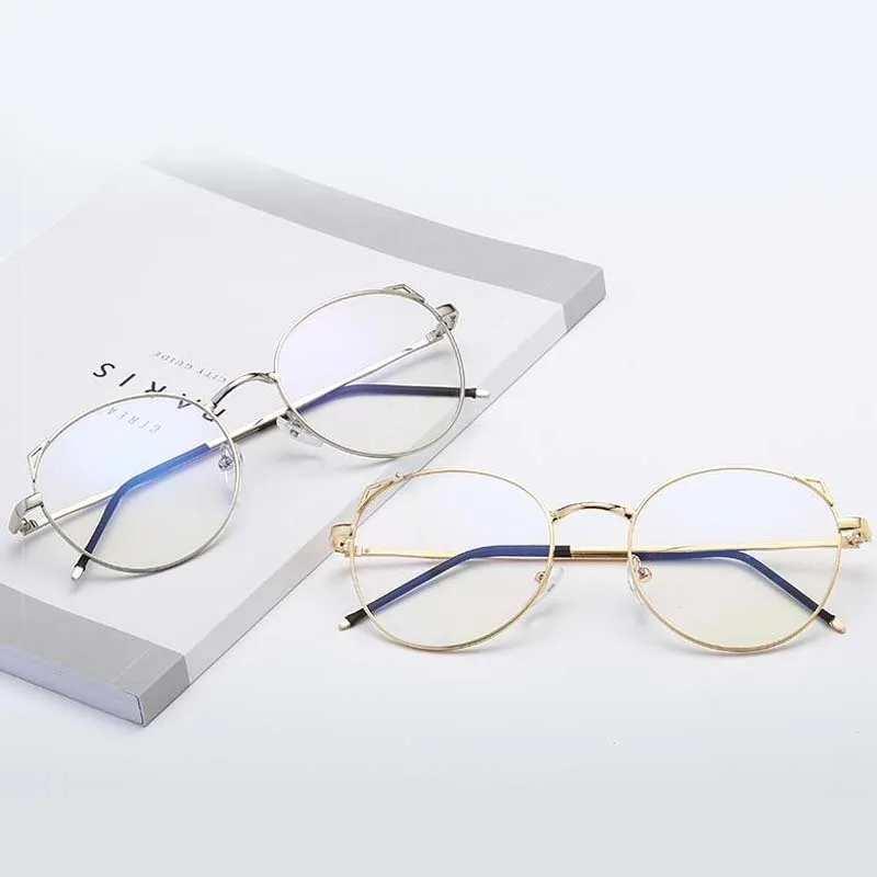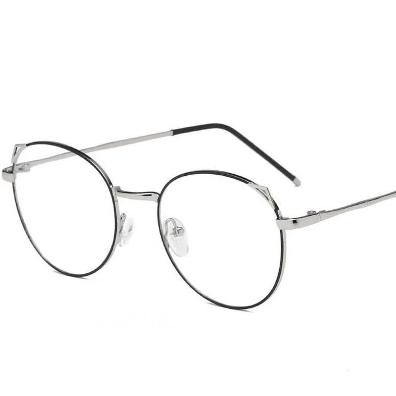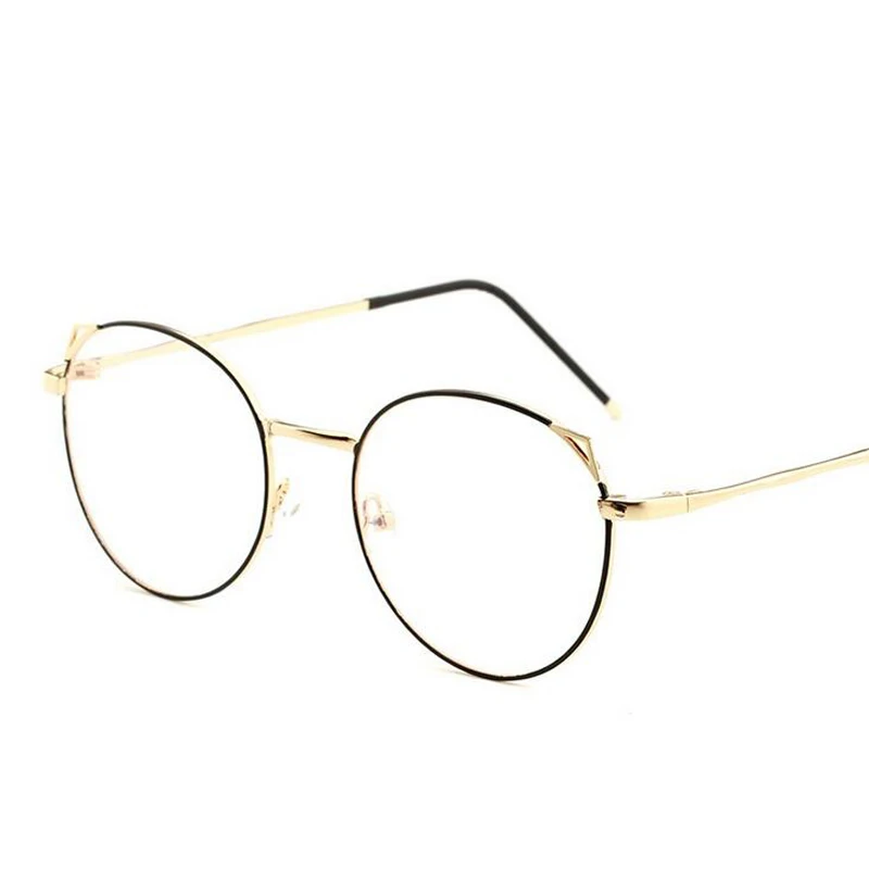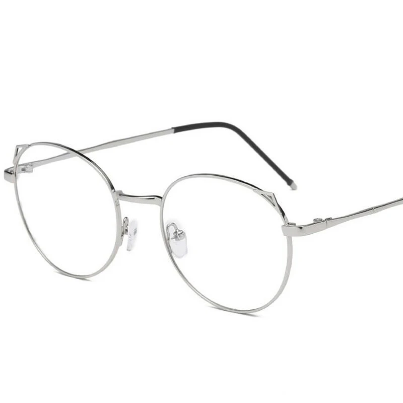Женские Ретро очки для близорукости, круглые очки в металлической оправе с кошачьими ушками, Плоский Зеркальный светильник, женские оптические-1,0-1,5-2,0-2,5-3,0-3,5-4,0